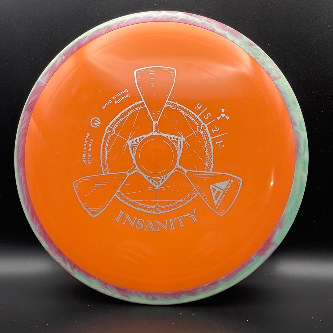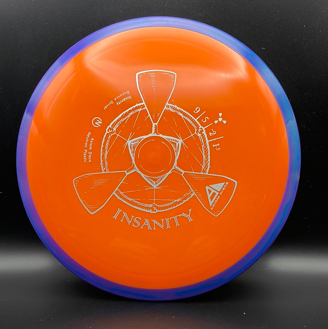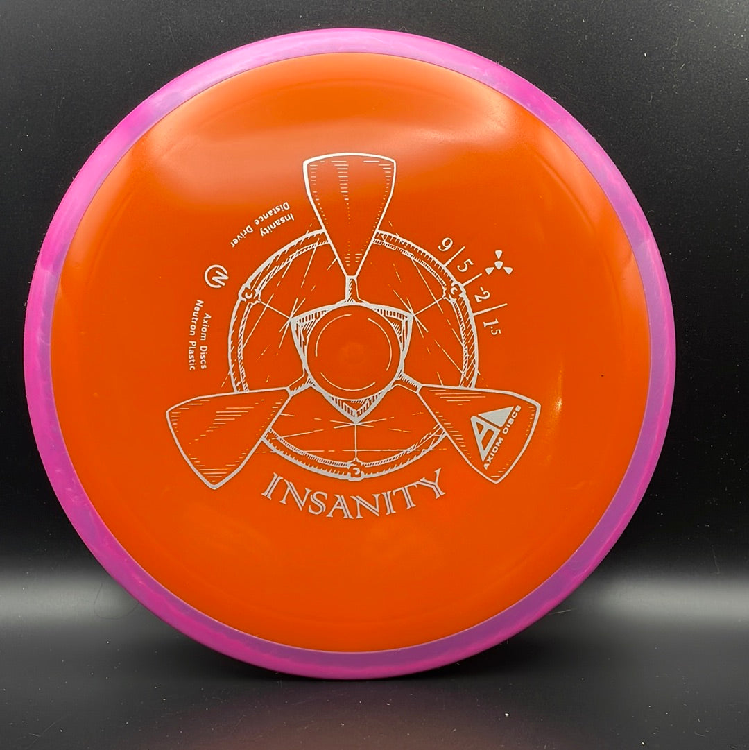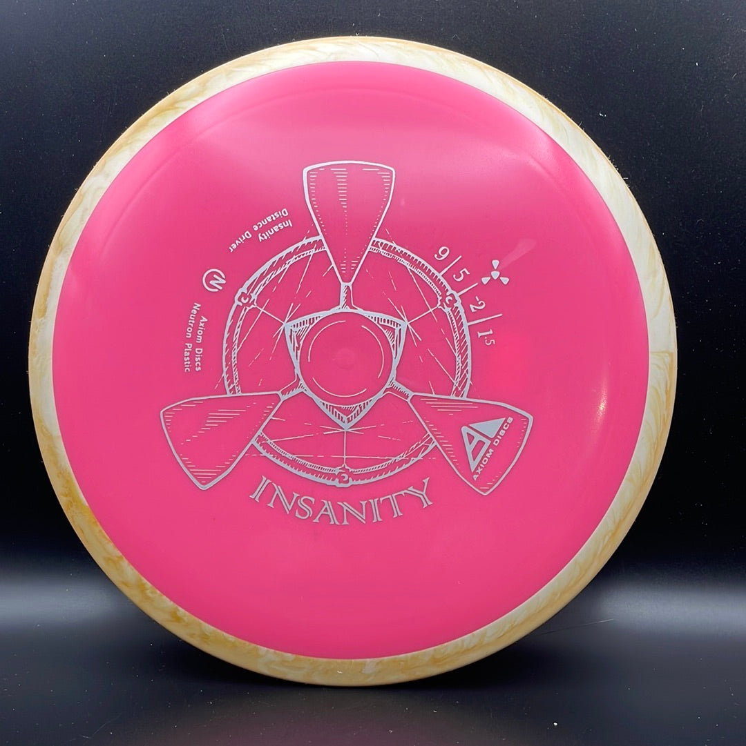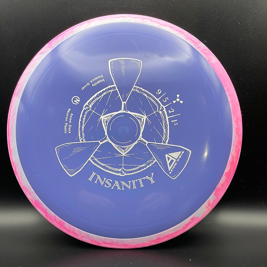 The Insanity is a stable-understable distance driver. The Insanity is best described as a worn-in MVP Inertia, with slightly more high-speed turn and a diminished fade. For average power throwers, the Insanity will be remarkably straight, while high power throwers can execute precise flip and turnover lines with ease. Whether you’re looking for that sweet-spot worn disc flight, or you’re looking to achieve bigger Inertia lines with less power, give Insanity a shot. The defining characteristic of the Insanity’s flight is its slow turn and straight fade, crafted by design with softened shapes to mimic a worn Inertia. Thusly the Insanity needs less power to execute certain Inertia flights and will exhibit a bit more turn and a noticeably more neutral fade portion than the Inertia. High power throwers will see enhanced glide and forward carry at low speeds, making it useful for a variety of low-ceiling shots and higher tailwind-riding lines. Average power throwers will see the most advantage with low height drives that gain distance and have enough stability to easily range. The Insanity is most suited to backhand drives, and either highly skilled forehands, or beginner-power forehands. Its high-speed turn excels for hyzer-flip drives, turnovers, and smooth-power flat ,, as well as a variety of utility and tailwind shots.