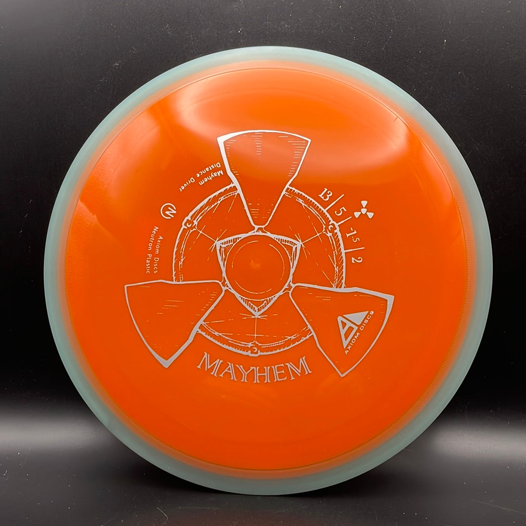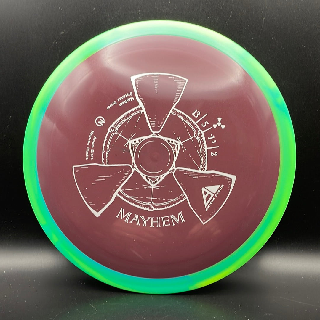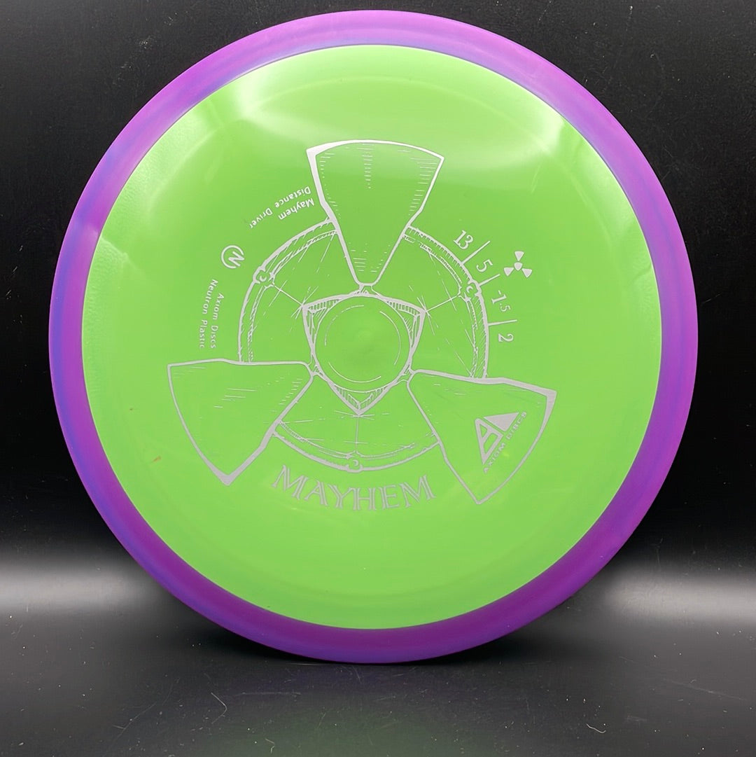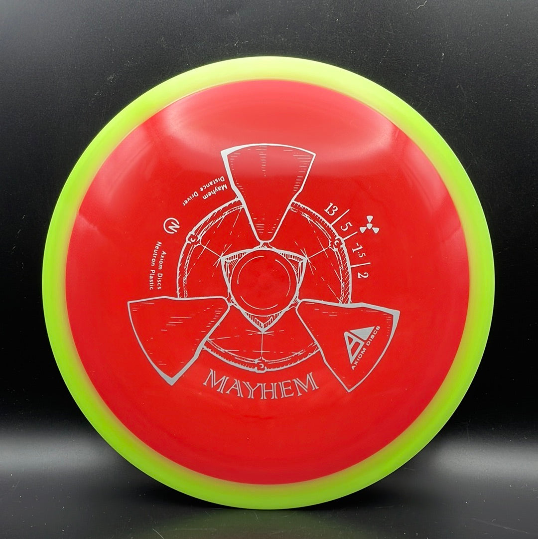 Mayhem is a straight-stable high speed distance driver. Mayhem has a responsive straight-stable profile and plenty of speed, making it a perfect workhorse driver for many advanced and expert throwers. Like the MVP 23 mm class, the Mayhem has a pronounced dome to promote distance-covering glide. Mayhem is best compared to a beat MVP octane.