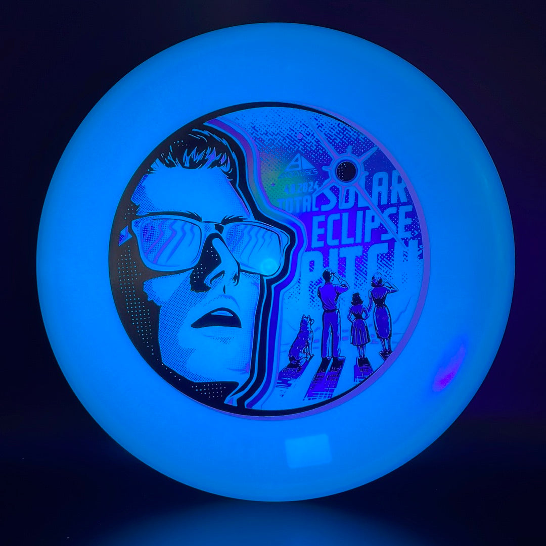Celebrate the April 8th Total Solar Eclipse with the first release of the Axiom Pitch! Matthew Jorde commemorates this moment, a 4 minute long eclipse of the sun, on our delightfully colorful Total Eclipse plastic. Featuring color glow cores and rims, the Total Eclipse Pitch is the perfect way to celebrate when the lights go out.