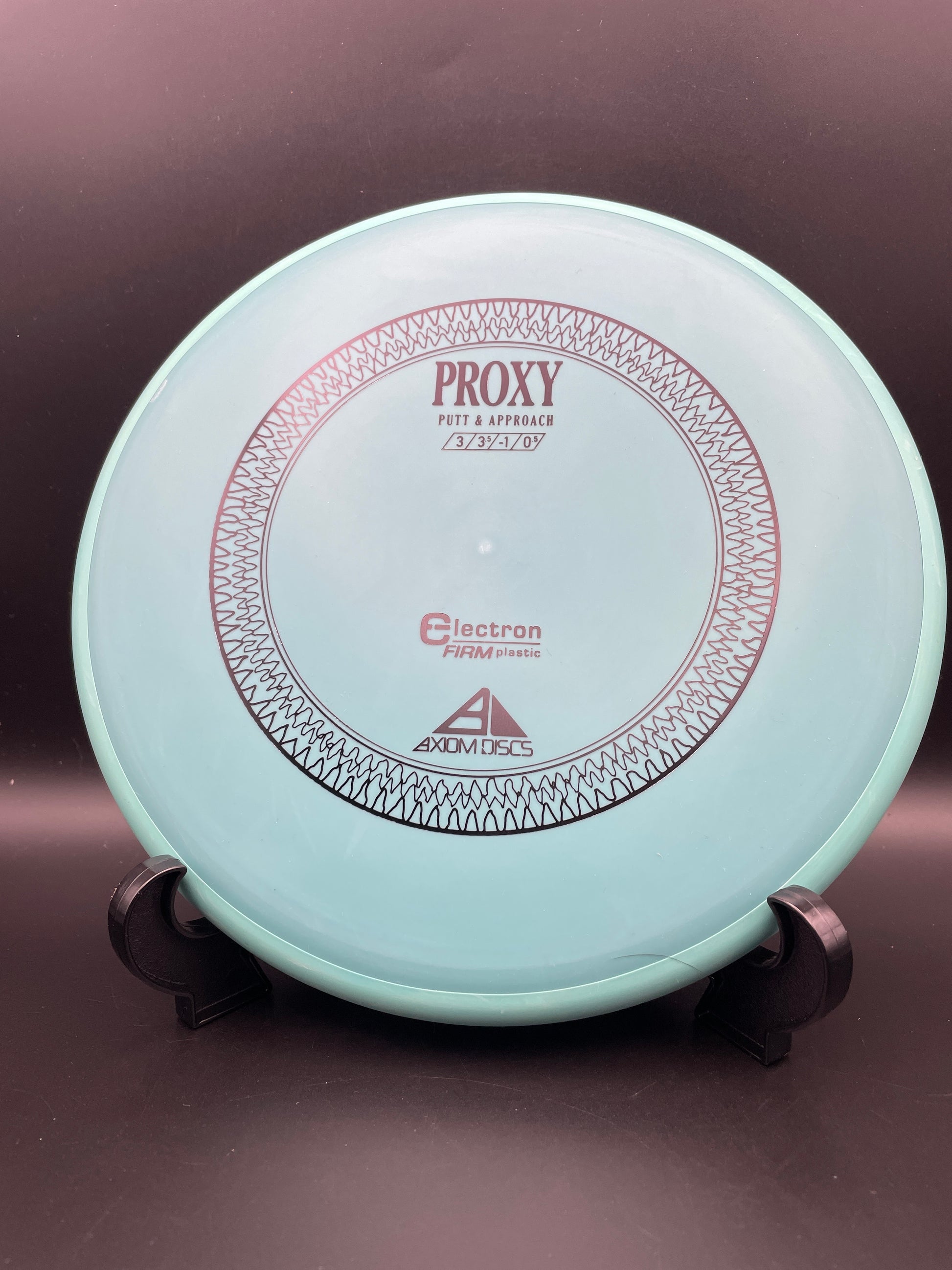 The Proxy is a straight-stable putt and approach disc. The Proxy shares the Envy mold’s core, lending the same low-profile feel and solid grip, along with a short wing width and wide flight plate diameter for superior glide. The Proxy sets itself apart from the Envy with a remarkably straight forward-fading finish. A bit of high-speed turn potential allows the Proxy’s lines to be manipulated over a broad range of power and helps less powerful throwers achieve straight putter drives. The Proxy’s defining flight characteristic is its ability to hold a straight flight at high speeds, but demonstrate the low-speed straight properties of a much more understable model’s ending stage. The Proxy is designed to exhibit the neutral straight-flying characteristic of classic “main” putters. Rather than requiring an extra wind-resistant overstable complement solely for harder throws, the Proxy is able to lock in with a similar high-speed stability as the Envy. Its neutral stability at a wide range of speeds will help the Proxy find its way into every Axiom thrower’s bag.