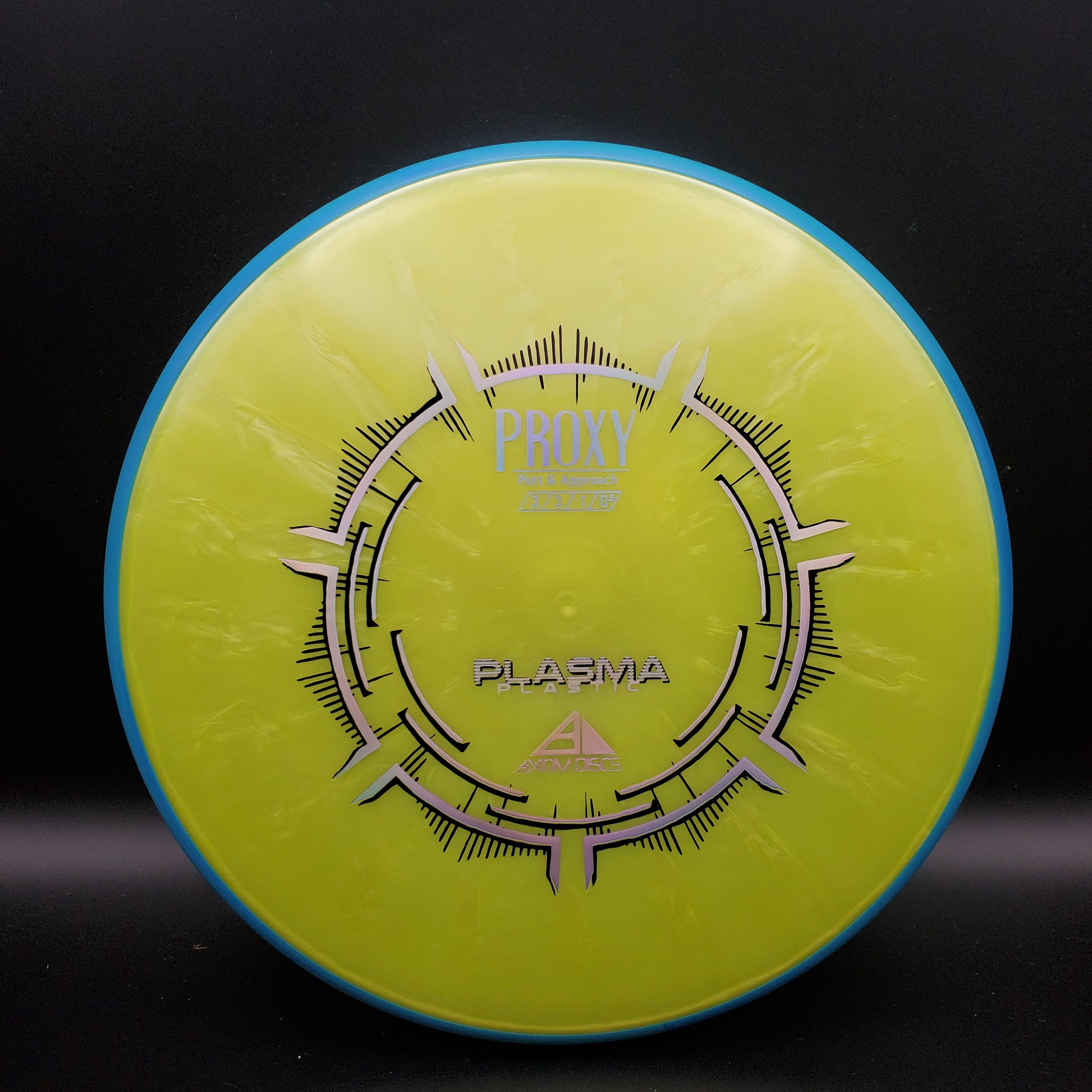 The Proxy is a straight-stable putt and approach disc. The Proxy shares the Envy mold’s core, lending the same low-profile feel and solid grip, along with a short wing width and wide flight plate diameter for superior glide. The Proxy sets itself apart from the Envy with a remarkably straight forward-fading finish. A bit of high-speed turn potential allows the Proxy’s lines to be manipulated over a broad range of power and helps less powerful throwers achieve straight putter drives. The Proxy’s defining flight characteristic is its ability to hold a straight flight at high speeds, but demonstrate the low-speed straight properties of a much more understable model’s ending stage. The Proxy is designed to exhibit the neutral straight-flying characteristic of classic “main” putters. Rather than requiring an extra wind-resistant overstable complement solely for harder throws, the Proxy is able to lock in with a similar high-speed stability as the Envy. Its neutral stability at a wide range of speeds will help the Proxy find its way into every Axiom thrower’s bag.