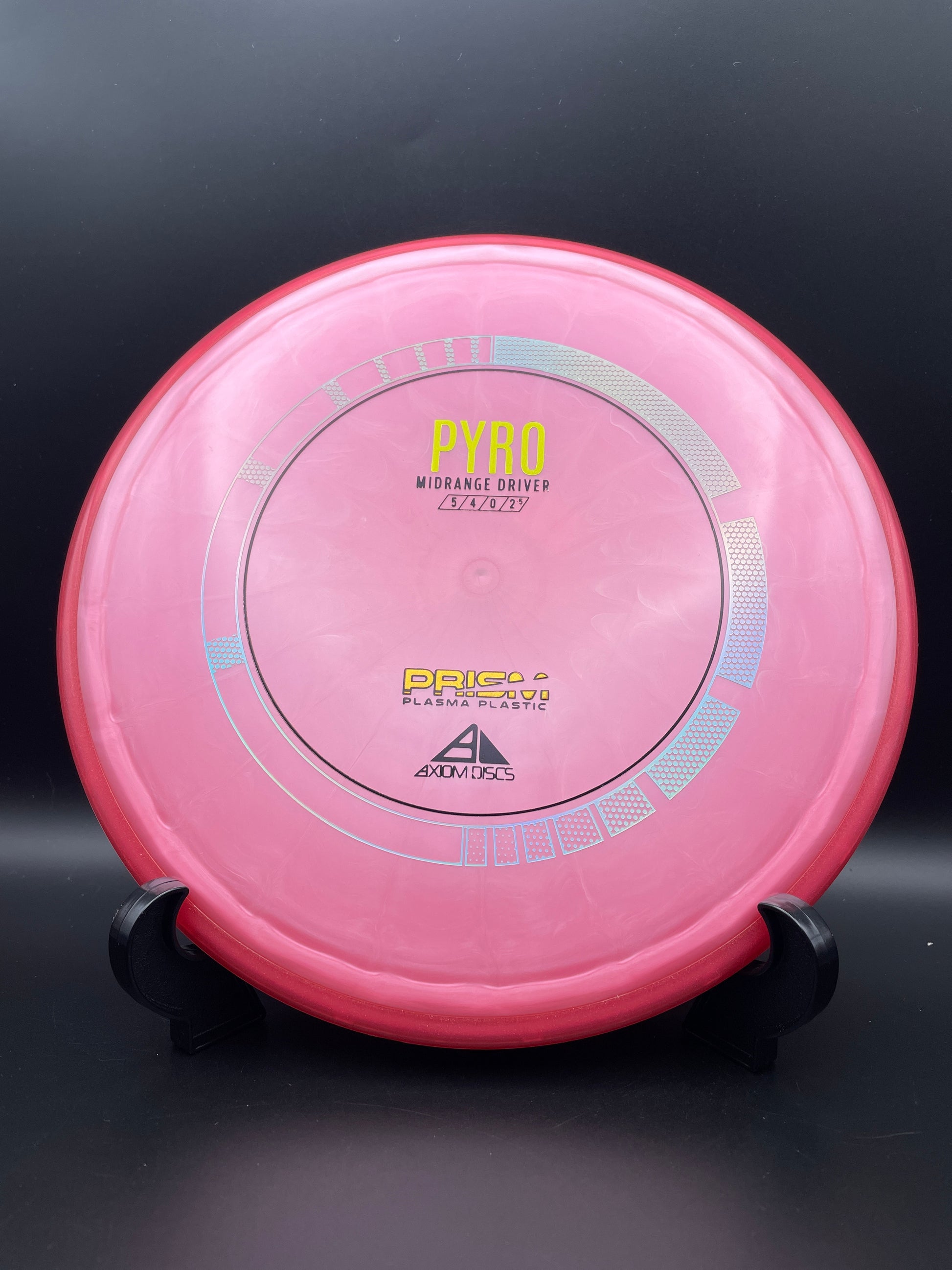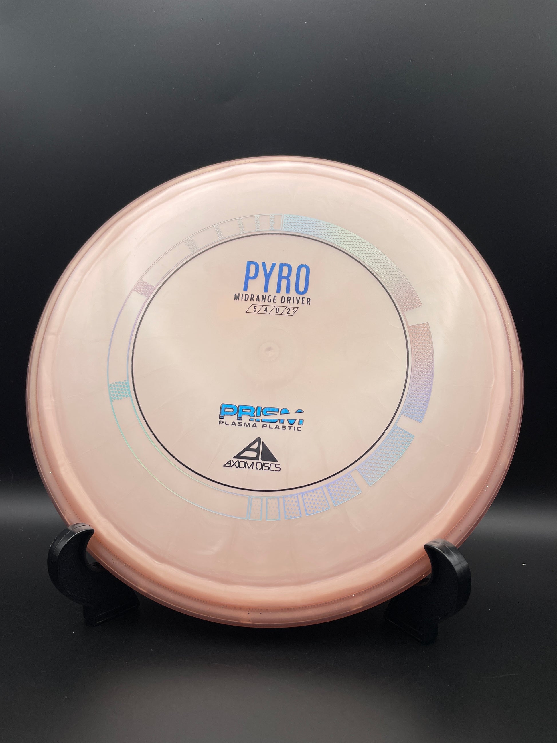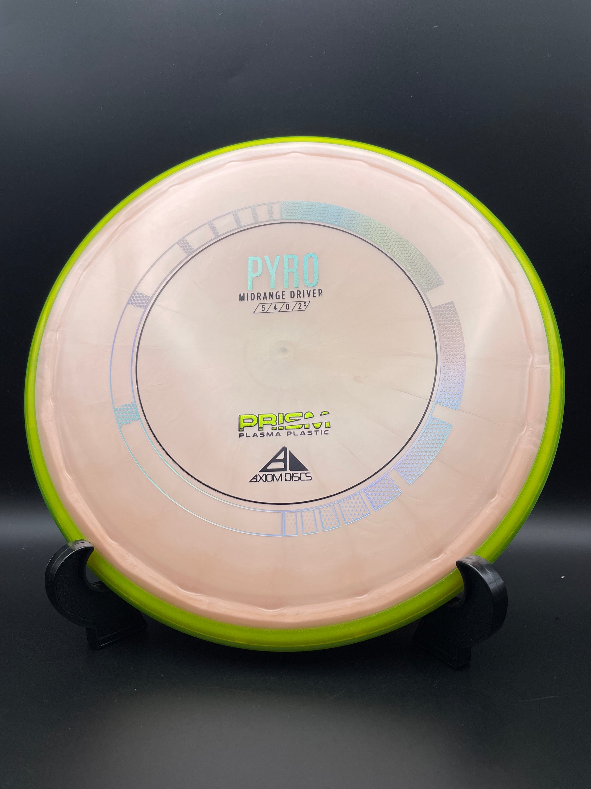 The Prism Pyro is debuting with a stock triple-foil stamp, that in combination with a Proton core and Prism rim produces a stunning dual-toned translucent disc. The Prism Proton Pyro was designed as Axiom’s first overstable Midrange with more glide than the MVP Deflector and a commanding stable finish. The Pyro has enough stability for consistent flights in strong winds and powerful throws without losing its line and turning off target.