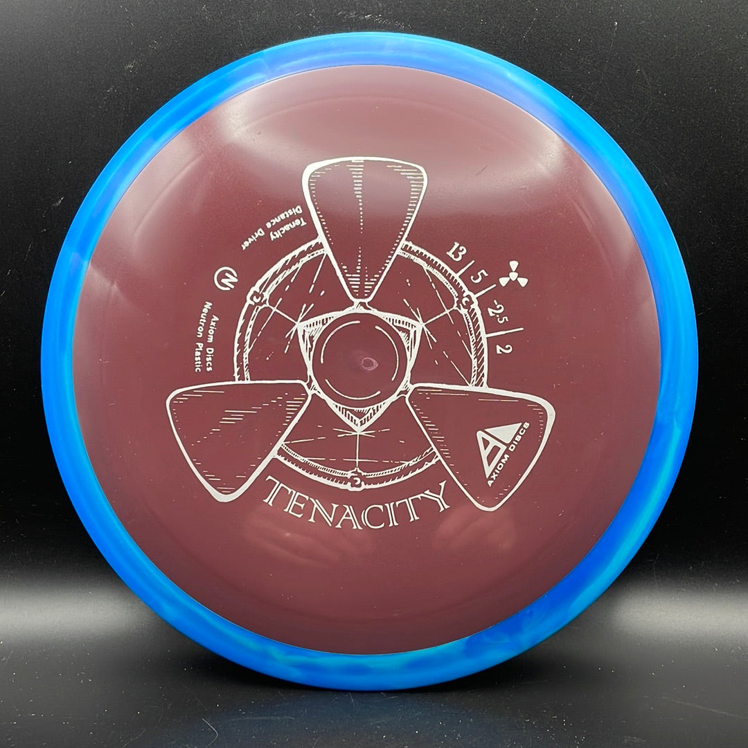 The Tenacity is an understable high-speed distance driver. Tenacity is axiom’s understable bomber from the new high-speed 23mm distance class. With proper form the Tenacity easily qualifies as “sneaky long”. Tenacity is best compared to a worn mvp catalyst, and features the familiar evenly domed top to promote distance-covering glide.