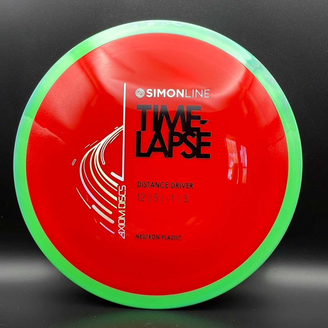 It’s official, the first stock release of the highly anticipated Simon Line is here, and we couldn’t be any more excited! Not only is the Neutron Time-Lapse the first disc in the Simon Line, it’s also the first 12-speed Distance Driver released in MVP Disc Sports history. With flight numbers of 12 | 5 | -1 | 3, the Time-Lapse has the potential to be your go-to bomber or favorite flex-line smasher. Experienced players will find the Time-Lapse to be a dependable straight-to-overstable flier, with high-power players activating some flight-extending turn. While newer players will still find a ton of utility here as a versatile line-shaper or a very lofty wind fighter. With a Neutron Time-Lapse in your bag, there are truly No Limits.