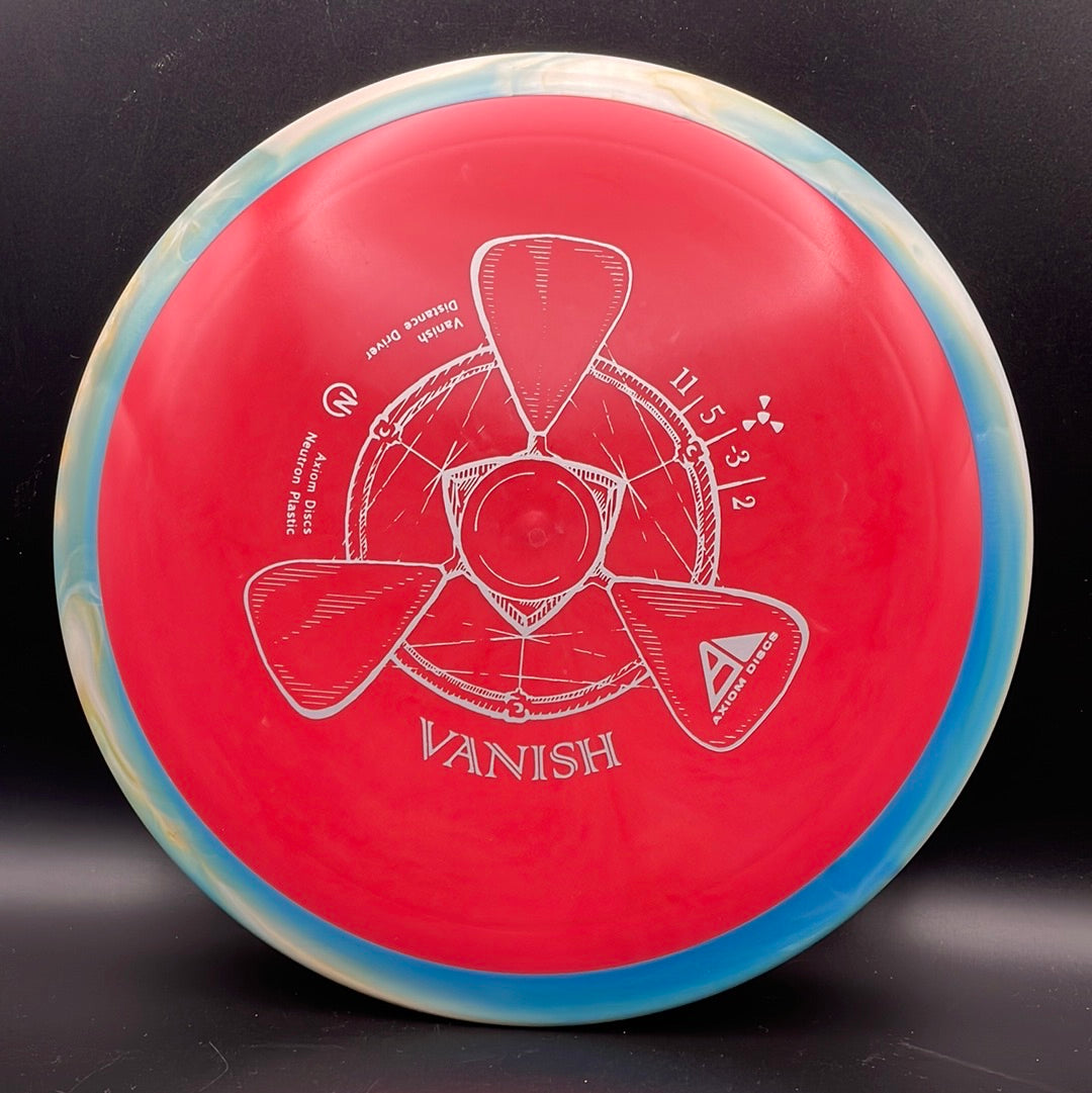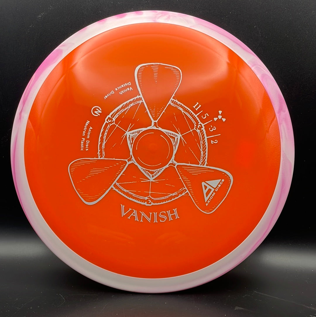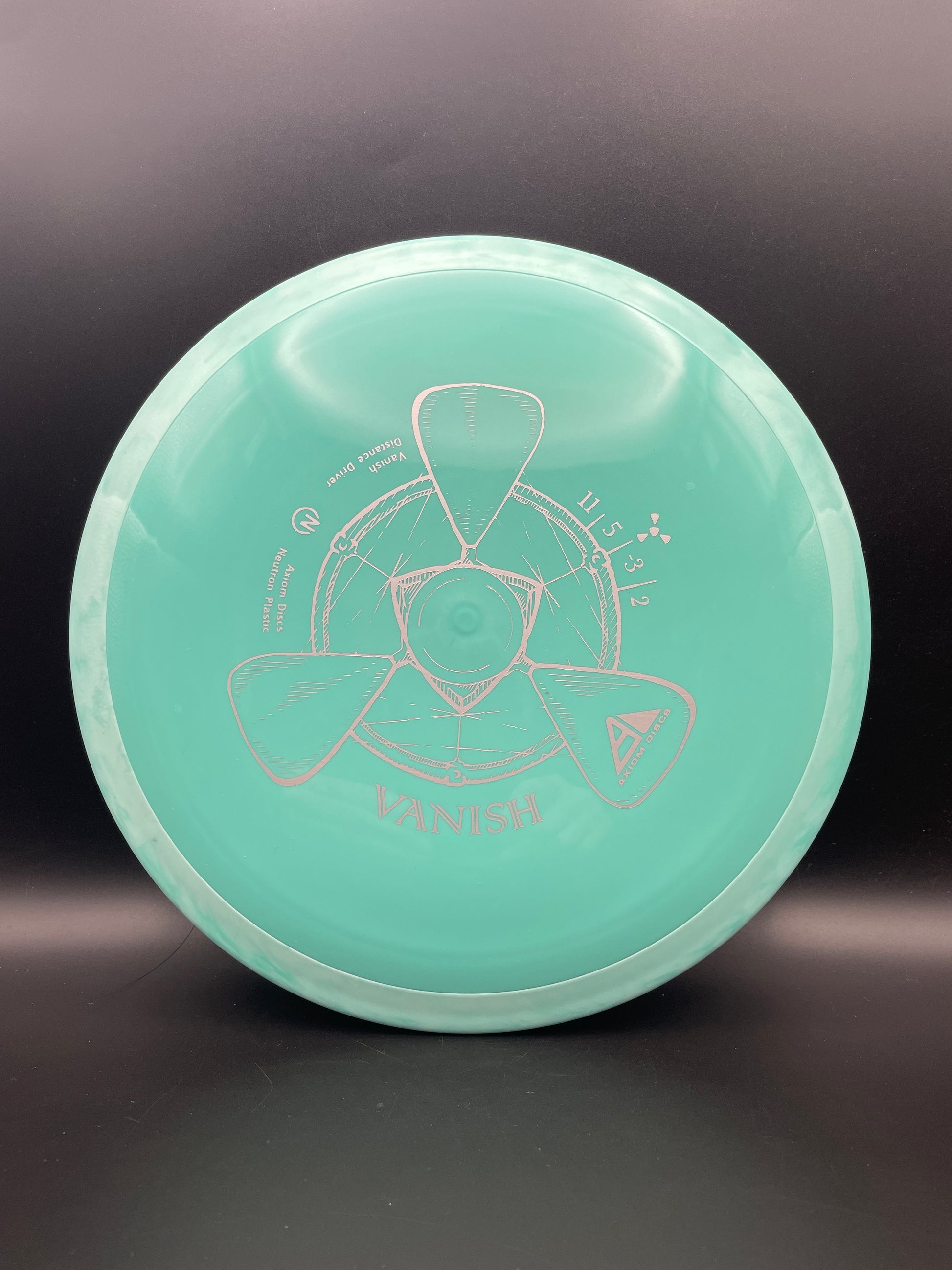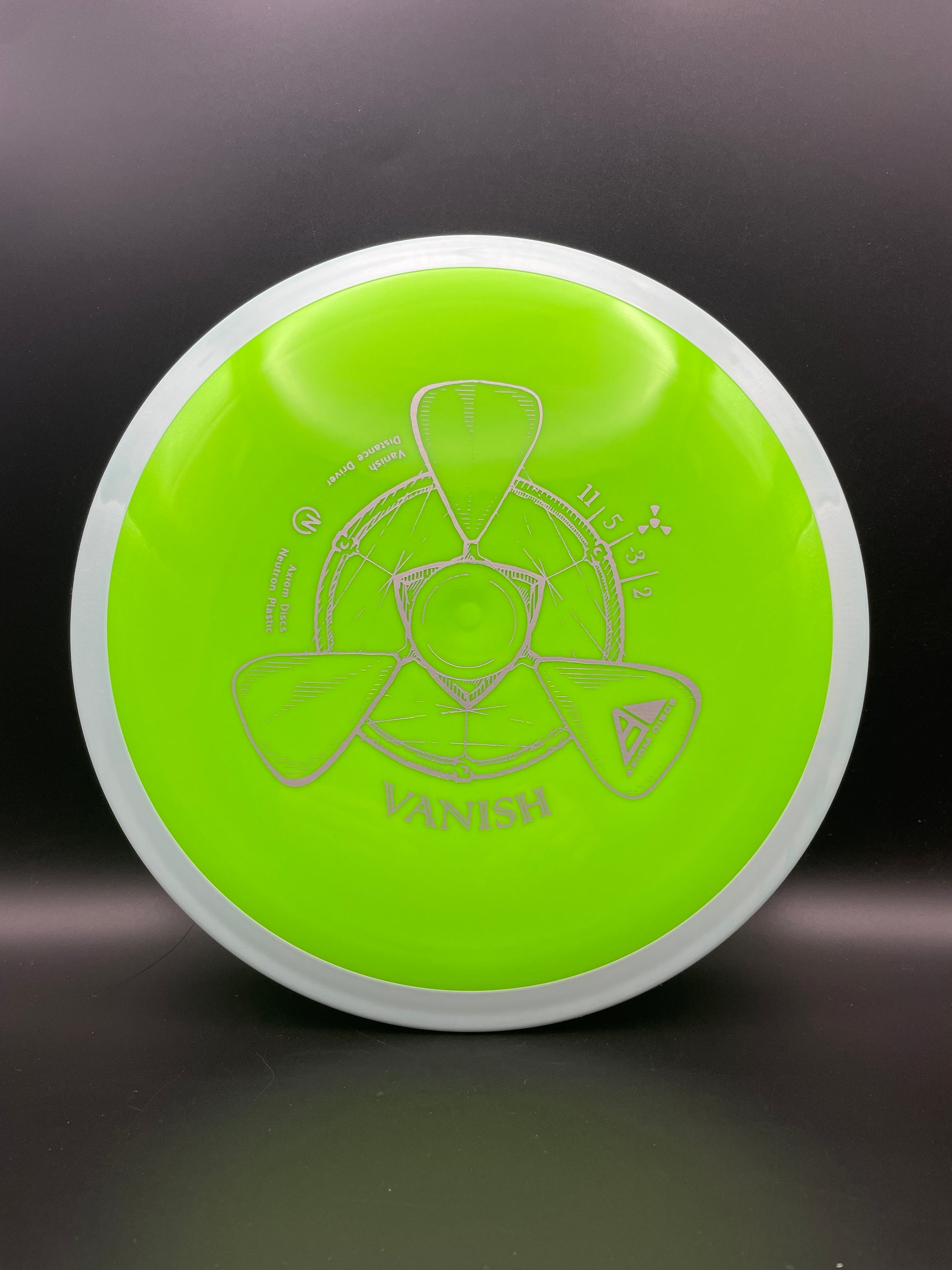 The Vanish is an understable distance driver. The Vanish will be straight to understable depending on the thrower and wind conditions. The Vanish’s stability profile places it near a threshold of being straight at low power or in tailwinds, and controllably understable at high power or in mild headwinds. As a 21mm class GYRO® driver, the Vanish is designed to hit a midpoint of stability between two MVP Disc Sports models, the Wave and Orbital.