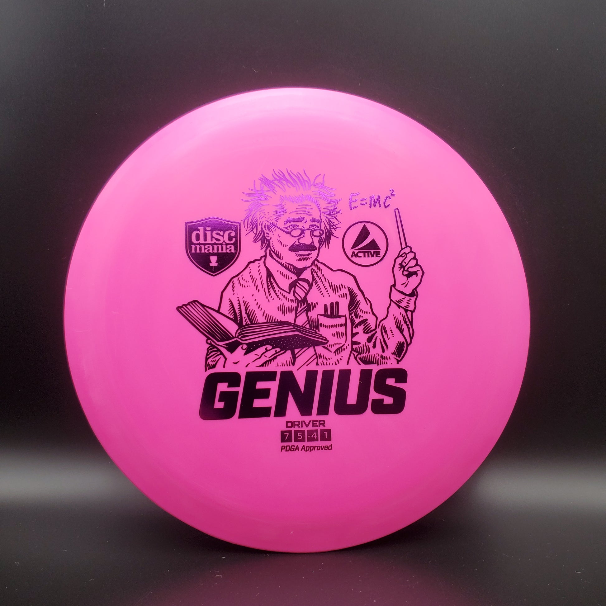 The Genius is the first driver featured in our new Discmania Active lineup. Designed to flip and fly, the Genius has massive amounts of turn making this the optimal disc for beginners as well as anyone looking for a disc that can do more. Due to its unique flight characteristics the Genius is able to fill a variety of shots in the bag making this an optimal driver for any player. The Genius uses its massive turn to carve shots in the air, navigate tight lines, and even turn into a roller that tears down the fairway. The Active plastic is the perfect balance between keeping the disc firm as well as soft to the touch meaning the disc always feels comfortable and natural in the hand.