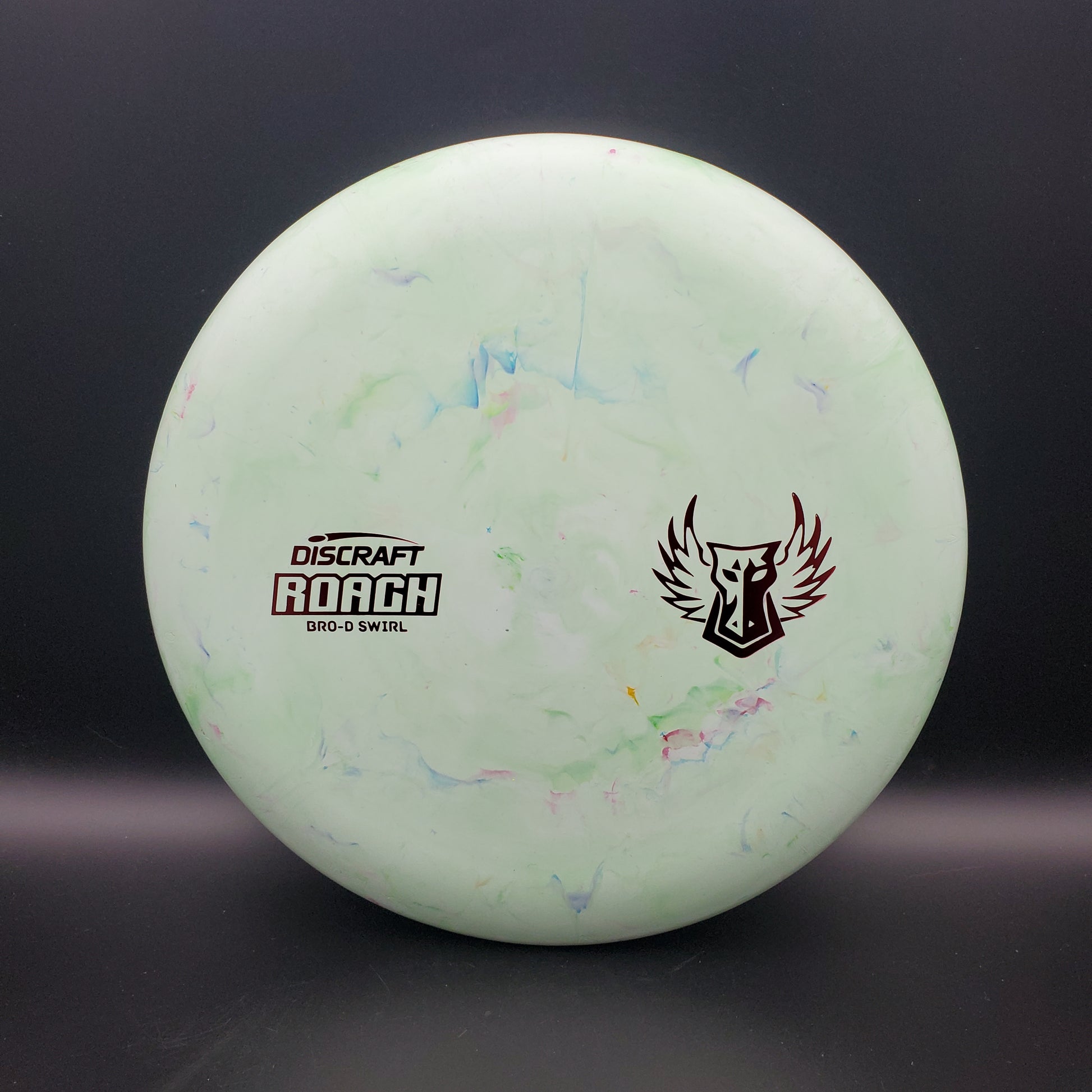 The Roach is Brodie's putter of choice and this plastic is special Swirl Bro-D Rubber Blend. The Roach is the 2015 Ace Race disc and is a straight flier with supreme glide. The Roach is a beadless putter and feels great in the hand.