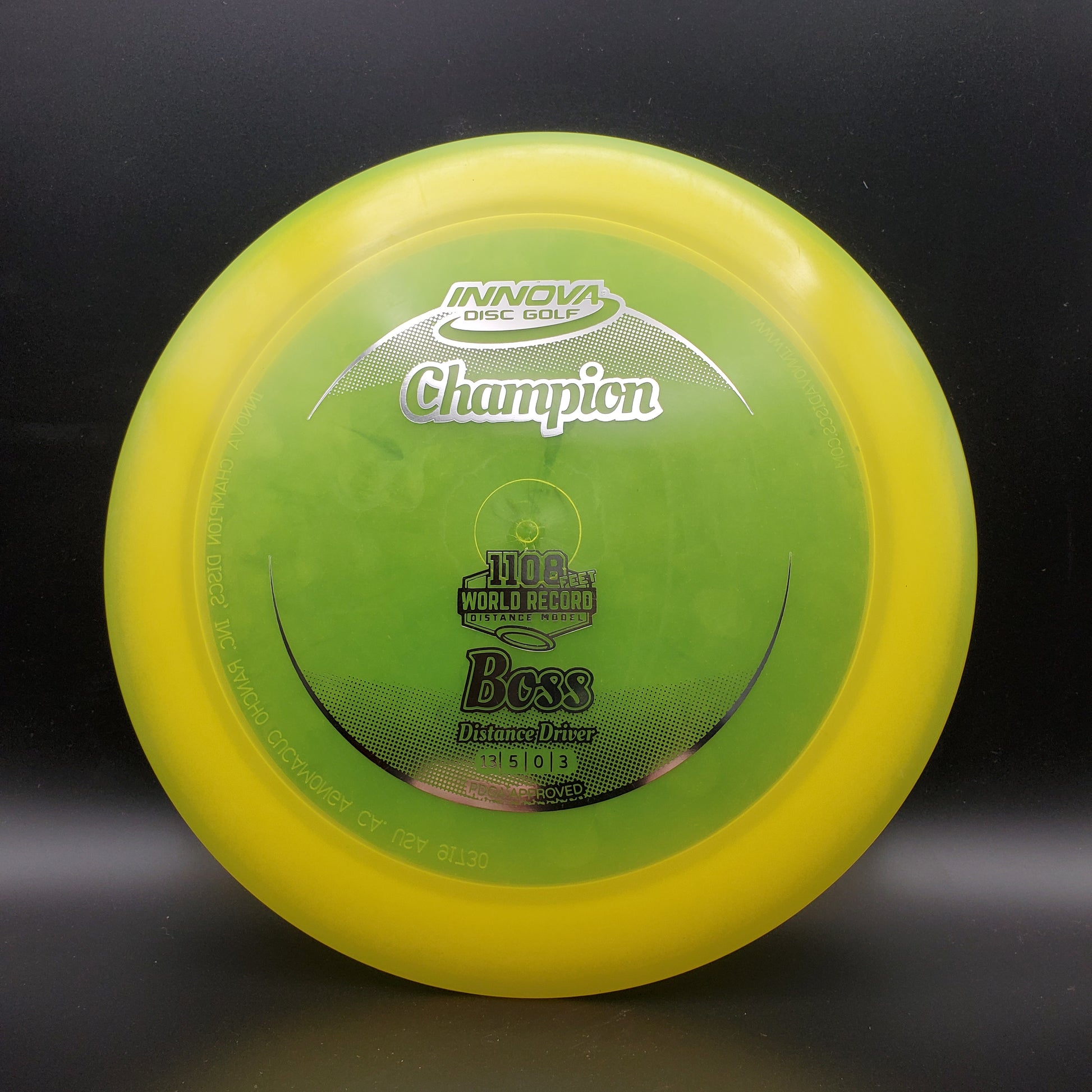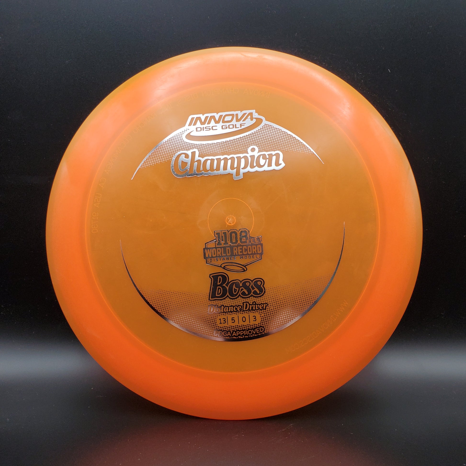 This is a fast stable driver that can handle full power throws and moderate headwinds. Advanced players and sidearm throwers will appreciate the dependable stability. The Boss has a slight high speed turn to help maximize distance with a predictable fade. David Wiggins Jr used a 154 gram R-Pro Boss to set the World Record 338 M (1108.92 feet) for the longest throw in March 2016. The Champion Boss flight numbers have been updated to better reflect the more stable flight.