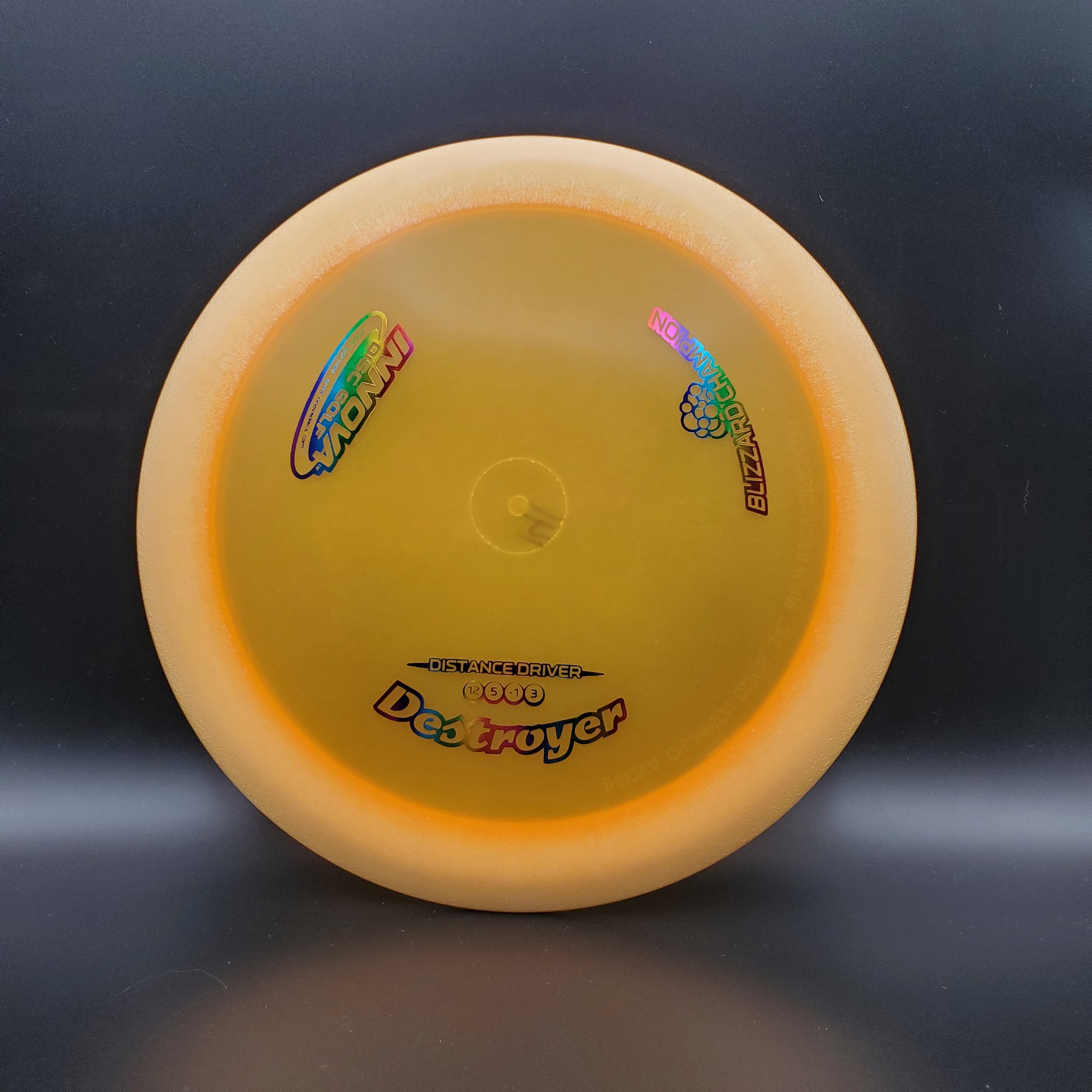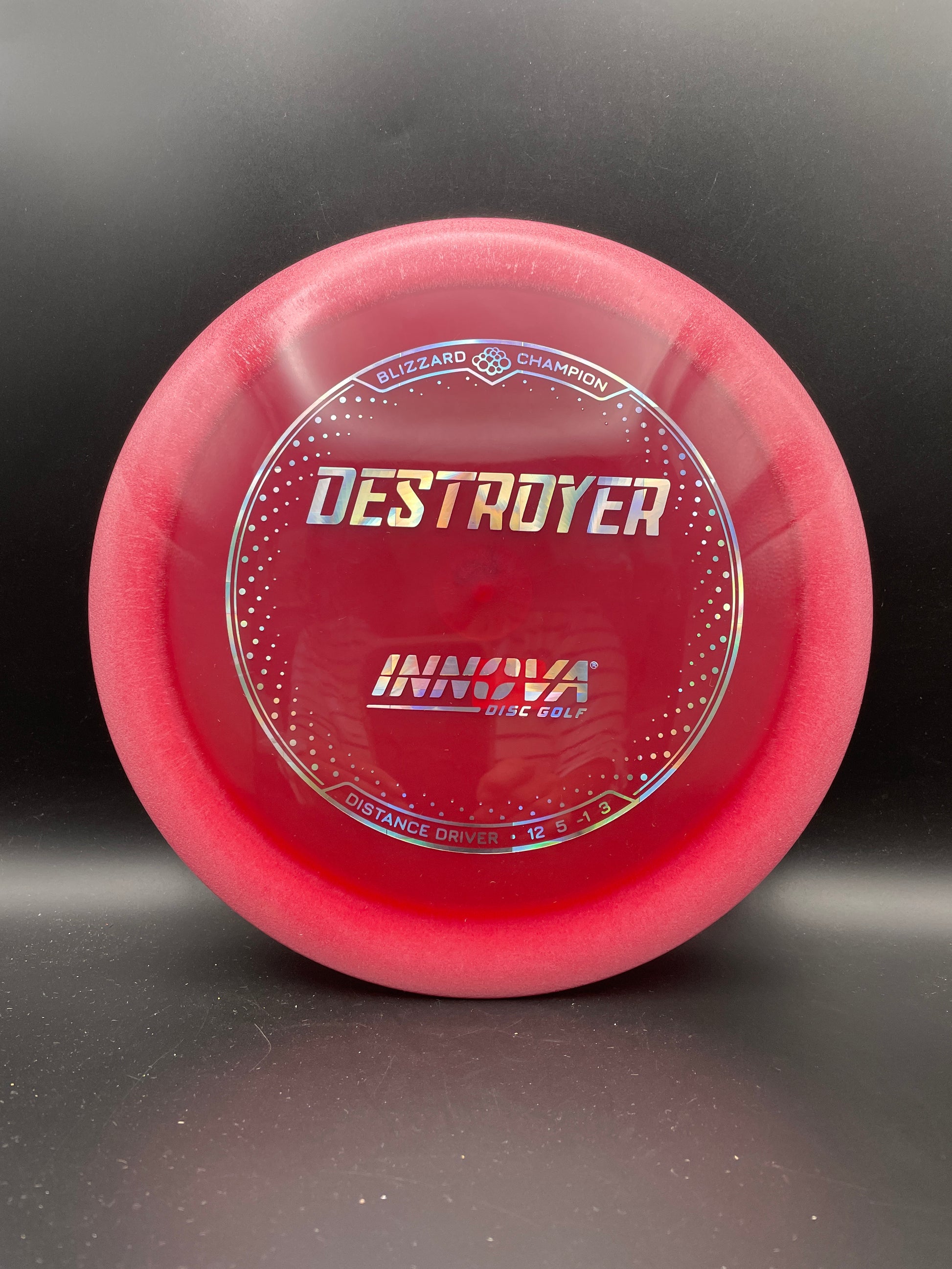 The Destroyer is a very fast stable long distance driver. This disc is much like a faster Wraith, but with a little more high and low speed stability. Great disc for sidearm throwers and those with lots of power. Can handle headwinds and throws with off axis torque.