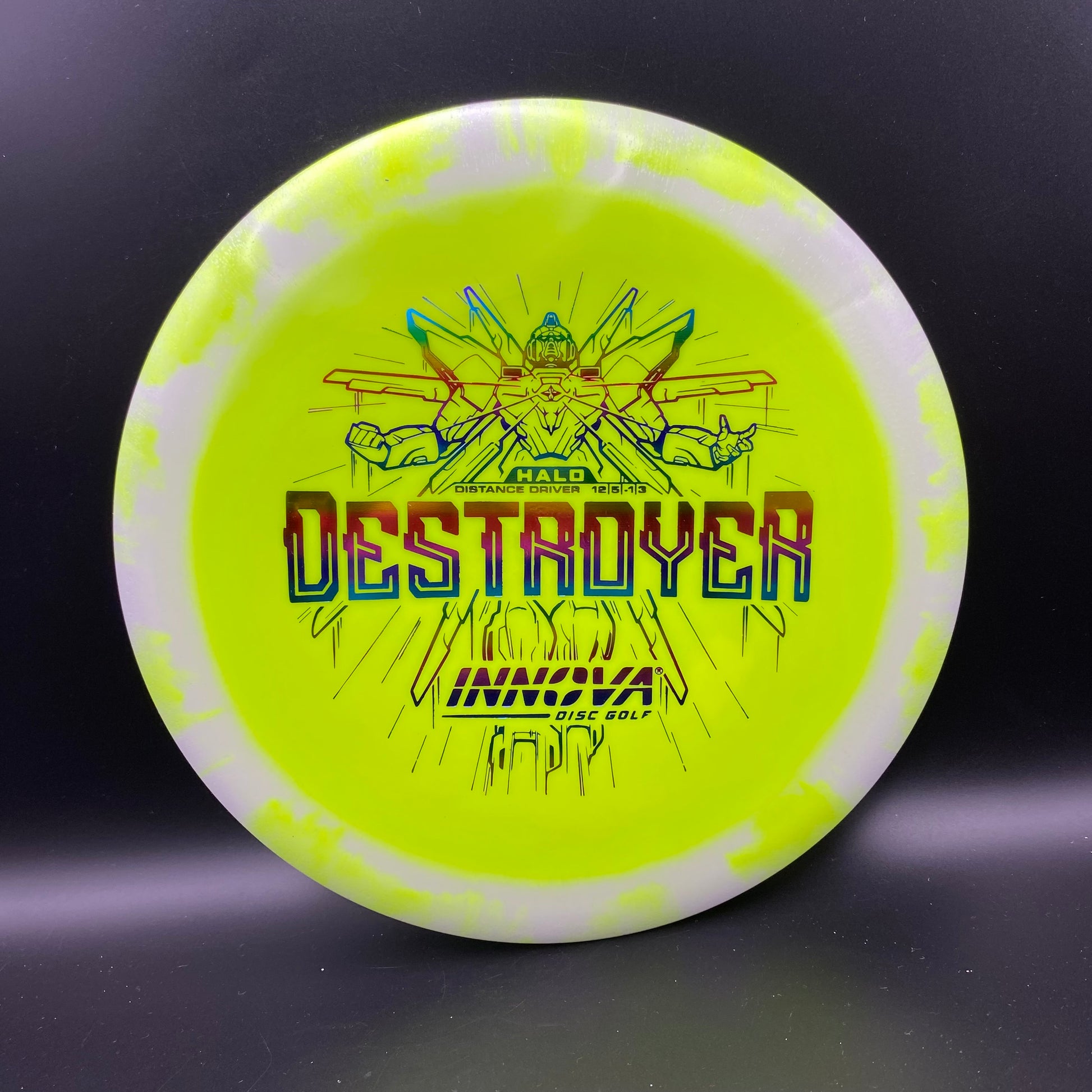 The Destroyer is a very fast stable long distance driver. This disc is much like a faster Wraith, but with a little more high and low speed stability. Great disc for sidearm throwers and those with lots of power. Can handle headwinds and throws with off axis torque.