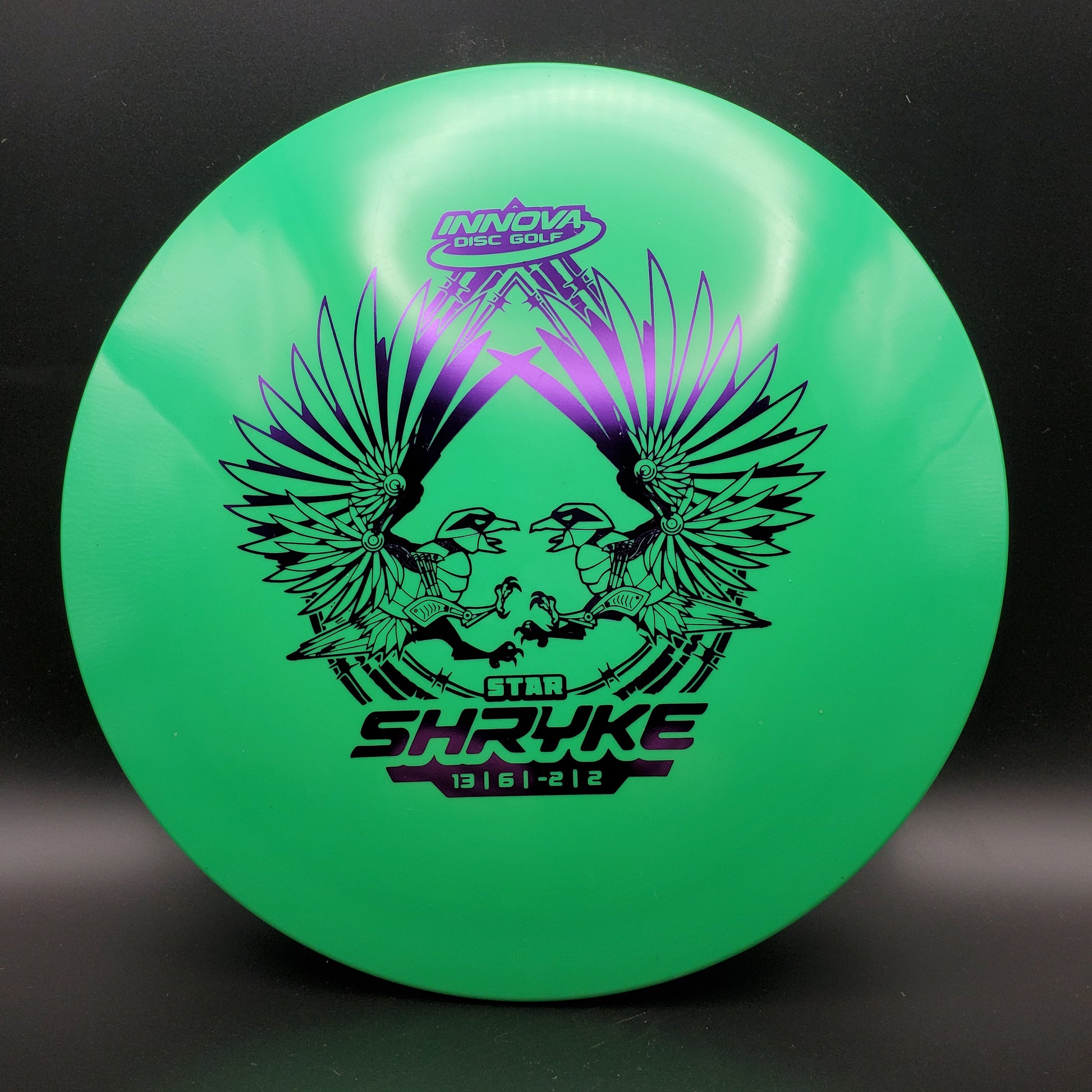 The Shryke is an easy to throw, very long range driver for a wide variety of players. A mild high speed turn puts the Shryke in glide mode, which along with its high aerodynamic speed, give it incredible distance. The low speed fade is also mild, which makes it easy to keep on the fairway. The Shryke is similar to our popular Tern but faster and slightly more high speed stable.