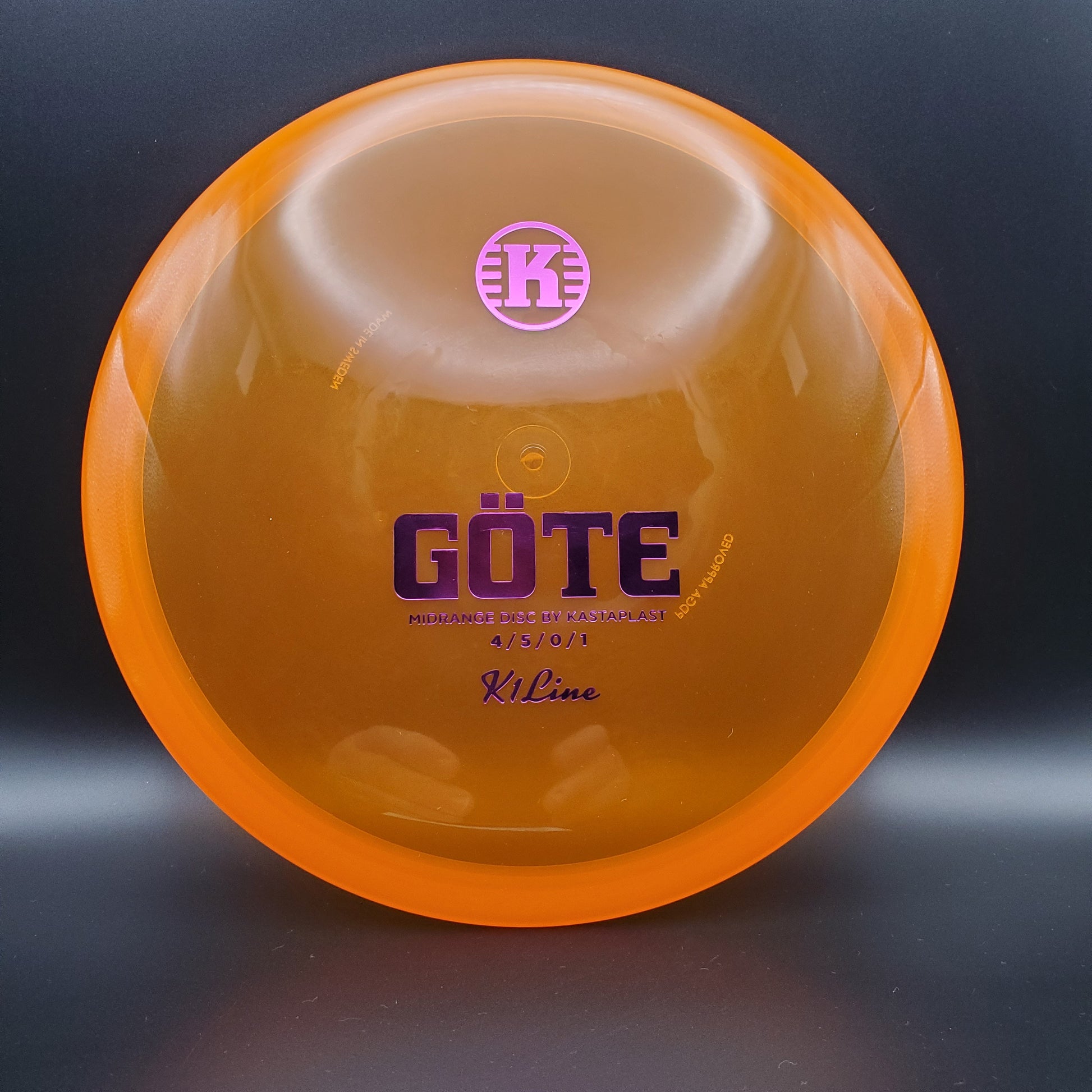 Point and shoot. With enough high-speed stability, lots of glide and a gentle fade, the göte holds the line on both drives and touch shots. This large diameter midrange disc is slower than our Kaxe midrange driver and more workable on shorter holes and when powered down. Göte is an old Norse first name, meaning a person from Götaland (Southern Sweden). Pronounced [jøːtə] in Swedish, but it’s better known as “the Goat” elsewhere.