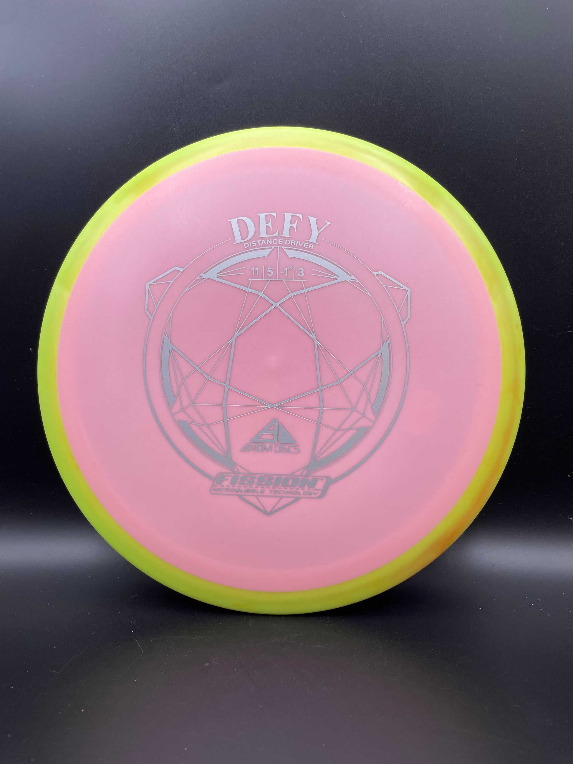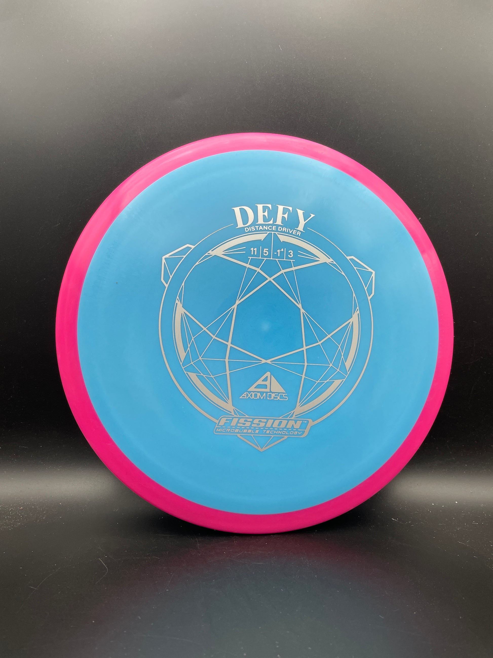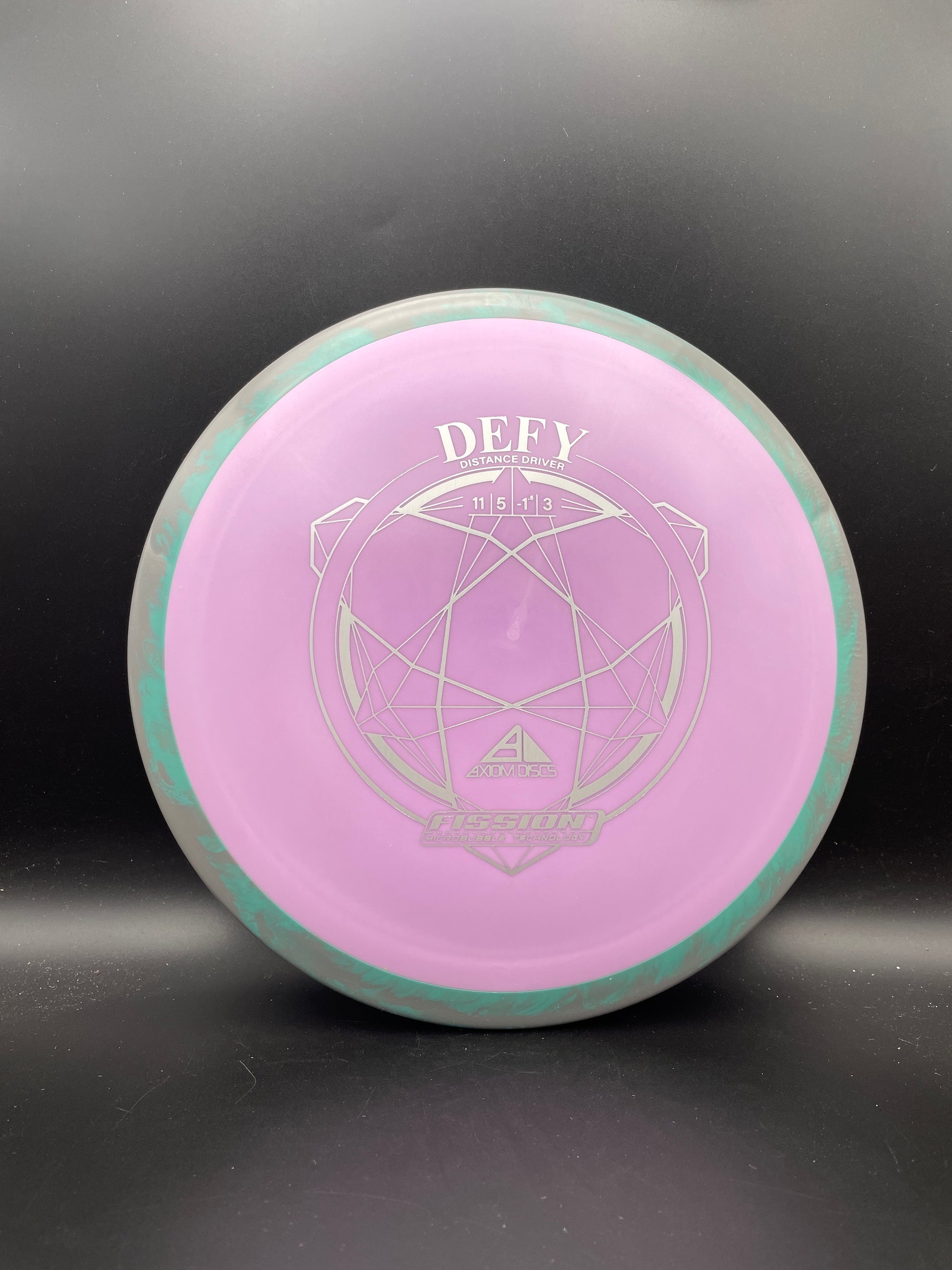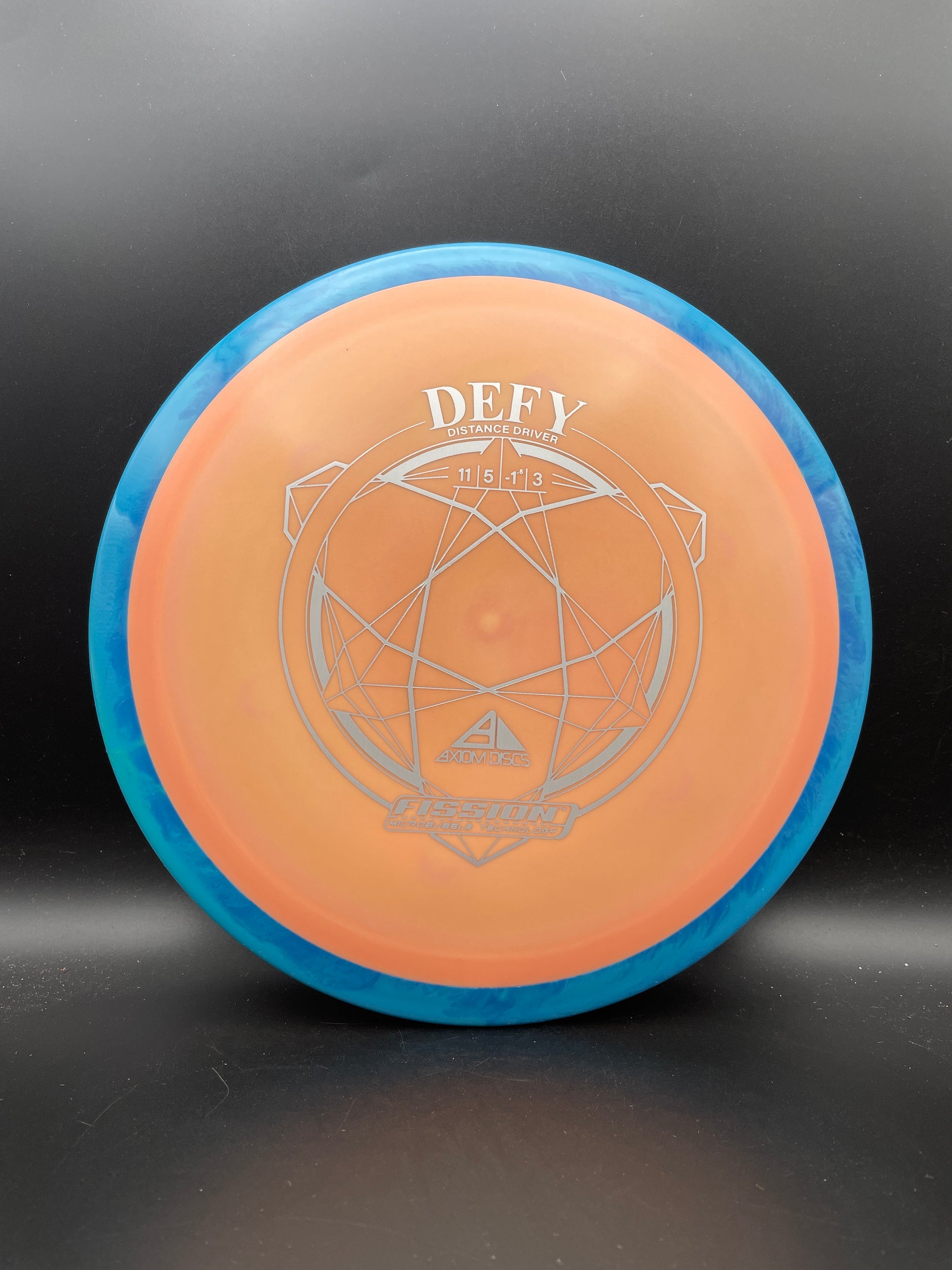 The Defy is a stable-overstable high speed distance driver. The Defy is straight with a nice bite of overstability at the end, and is best described as a more stable MVP Photon or a longer Axiom Clash. Like the Clash the Defy exhibits remarkable resistance to turnover even at high power. Players seeking a long straight power driver will appreciate the line-locking tendencies of the Defy, and throwers not fully powering the Defy will still get a highly useable long overstable disc.