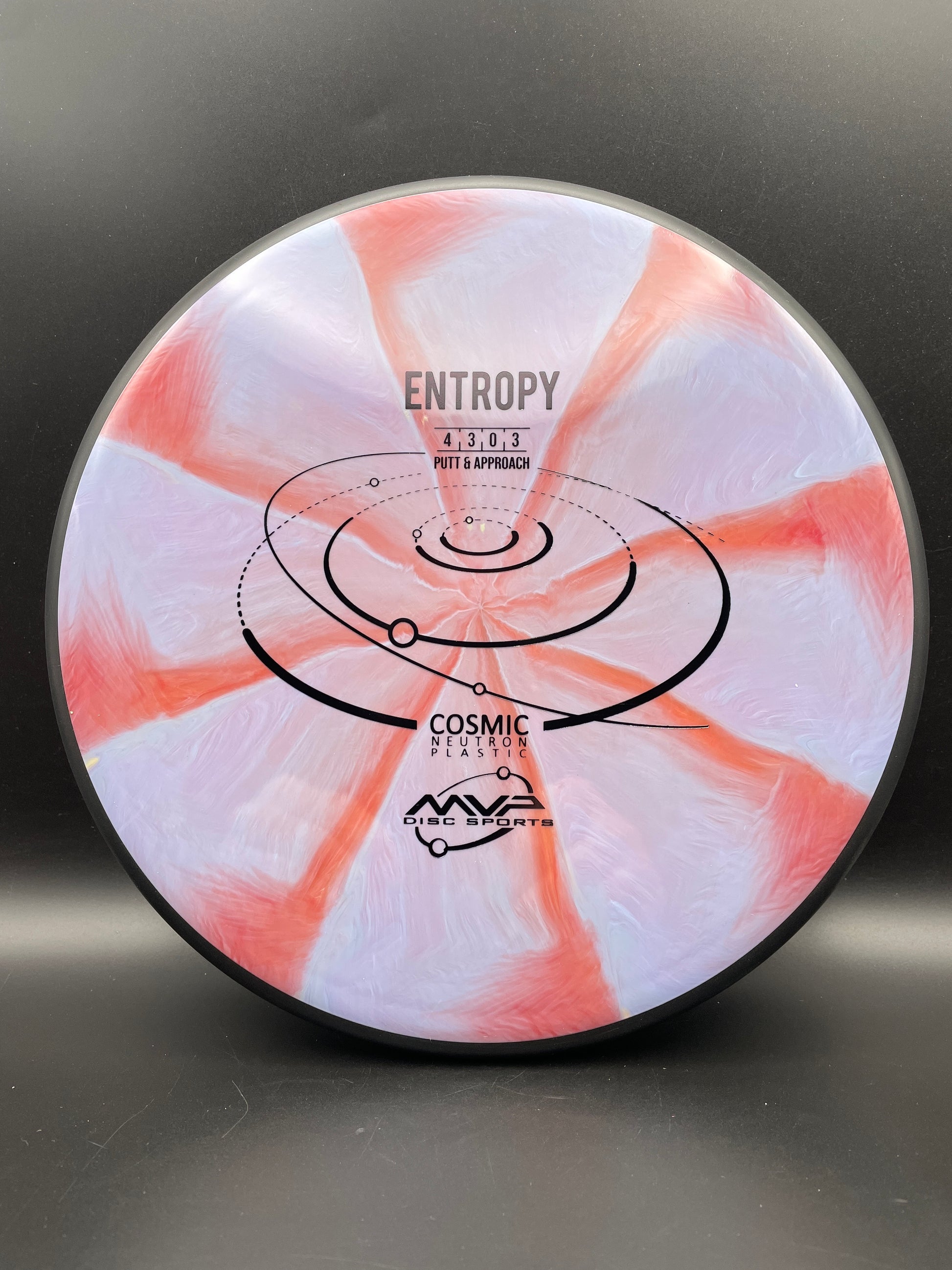 The Entropy is an overstable Putt and Approach disc designed for flights with reserved glide and a dependable finishing fade. The Entropy delivers as the overstable workhorse putter GYRO® fans have been waiting for. Making its debut in Neutron Plastic in the new 12mm MVP Putter class, the Entropy has the premium grip and durability to become your go-to approach or high wind putter. After an extensive development process, the Entropy has arrived and is ready to be disc golf’s next premier overstable putter! The Entropy is an overstable Putt and Approach disc designed for flights with reserved glide and a dependable finishing fade. The Entropy delivers as the overstable workhorse putter GYRO® fans have been waiting for.