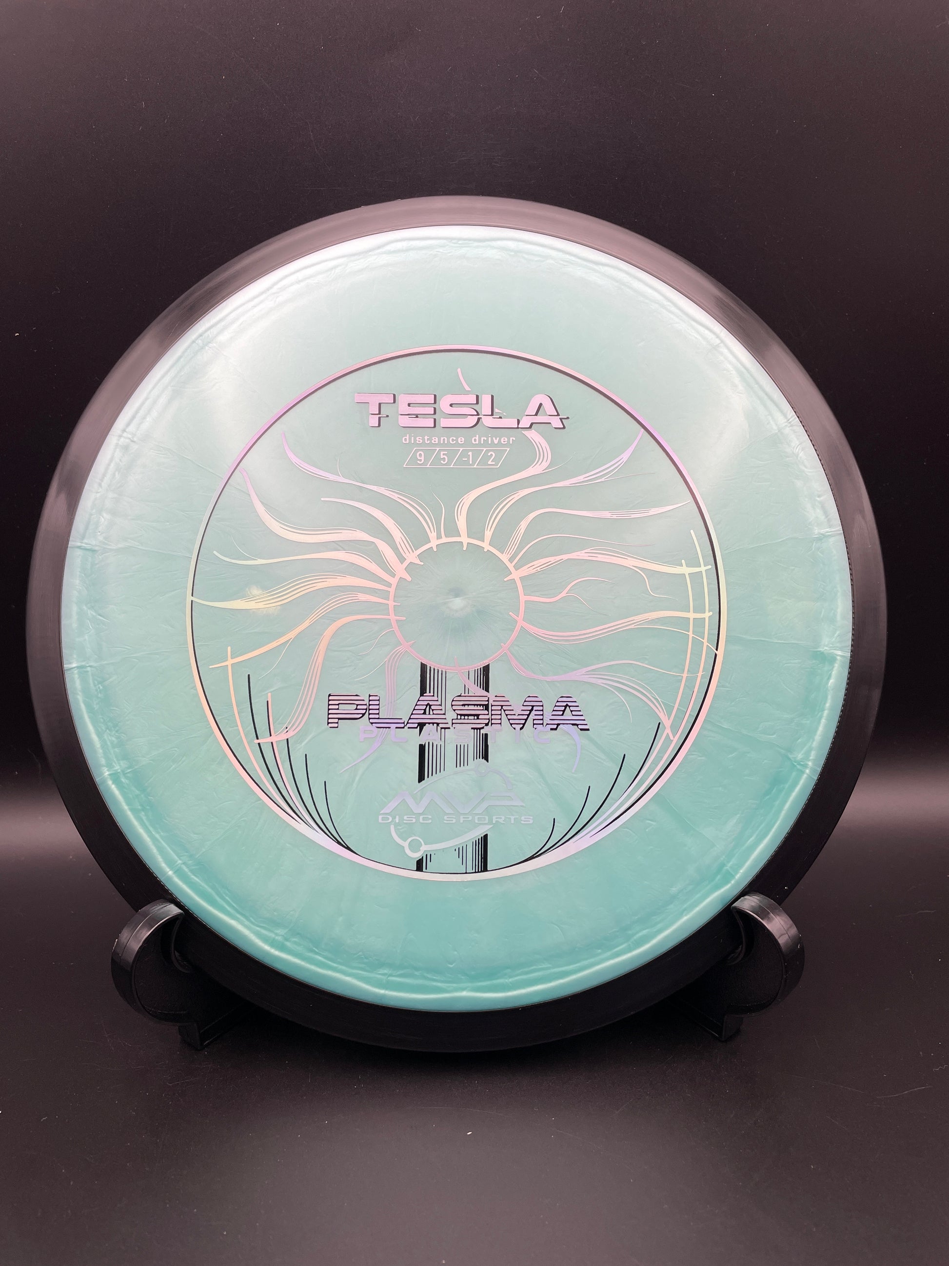 The Tesla is a stable-overstable distance driver. The Tesla's responsive design balances a subtle turn and reliable fade, while a pronounced glide and forward finish gain extra distance. The Tesla extends high power or headwind lines and has plenty of bite to fade back reliably and reduce lateral drift. The Tesla can be considered the big brother to our acclaimed Volt fairway driver. Choose the Tesla for long-range pinpoint accuracy. The Tesla's flight path is characterized by its workable turn resistance. Low- and average-power throwers will find a reliable wind-busting driver with a forward penetrating fade. Power throwers will achieve a tight near-flat turn with a fade finish. Its turn resistance and dependable fade make the Tesla a must-have for a wide range of throwers.