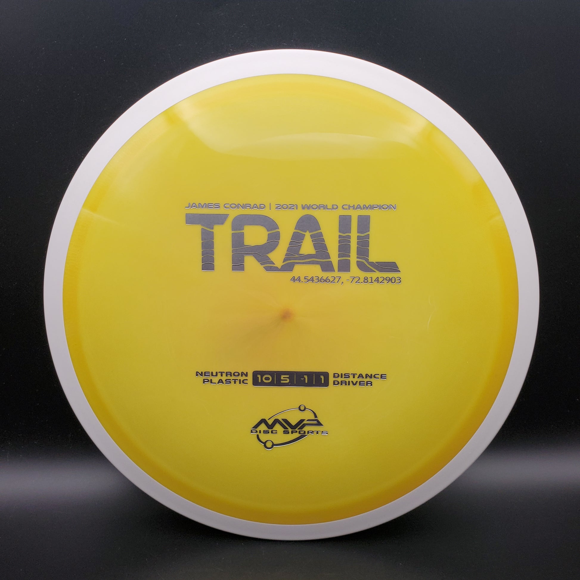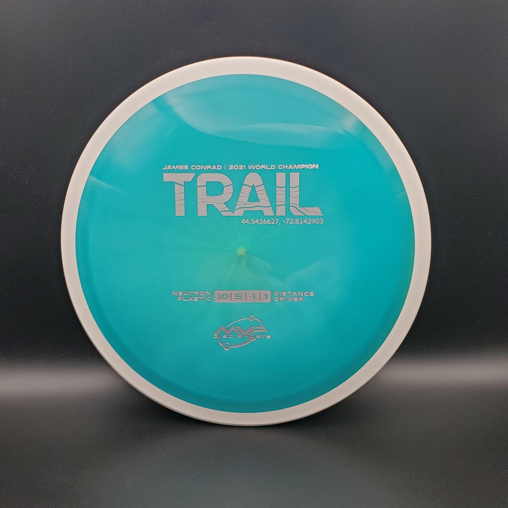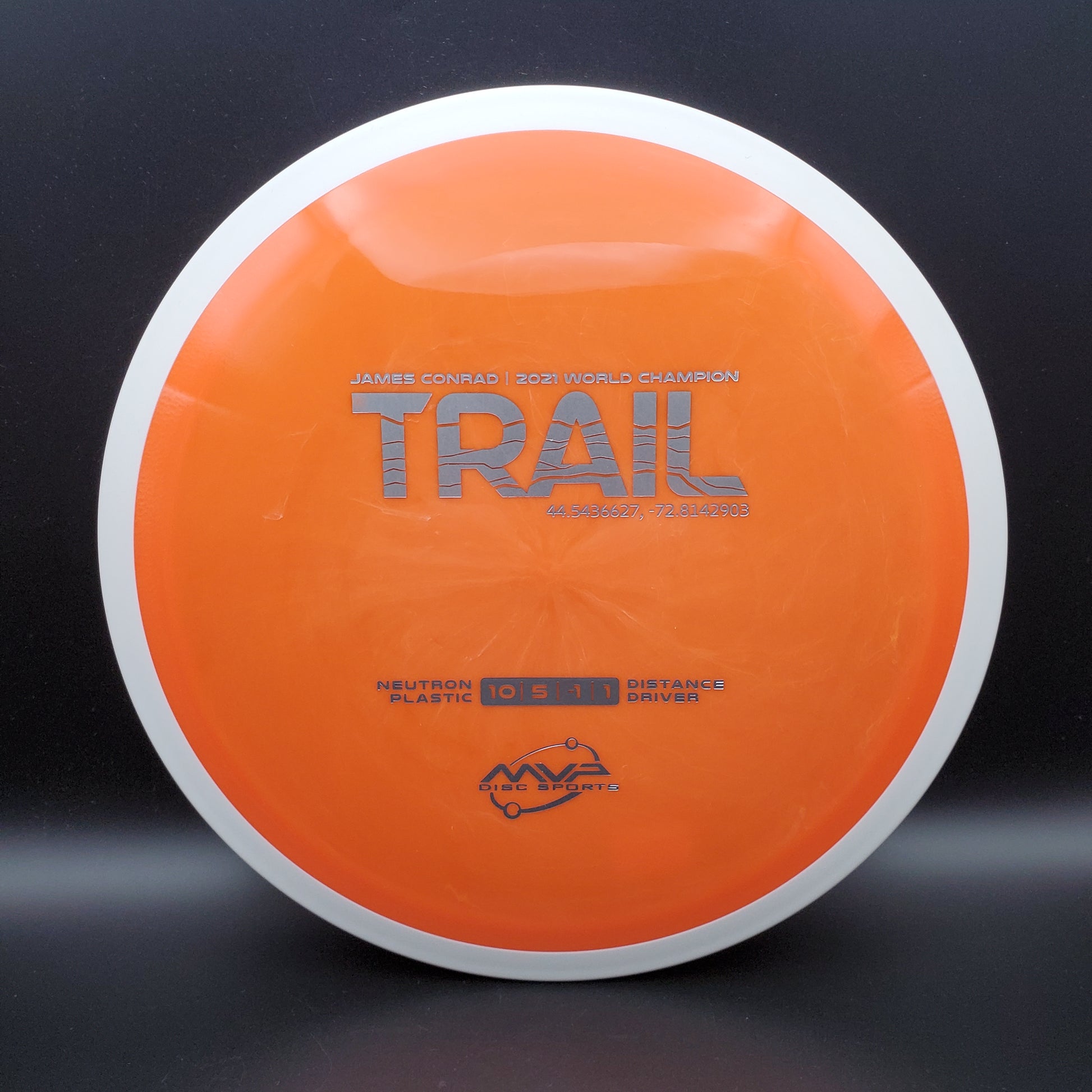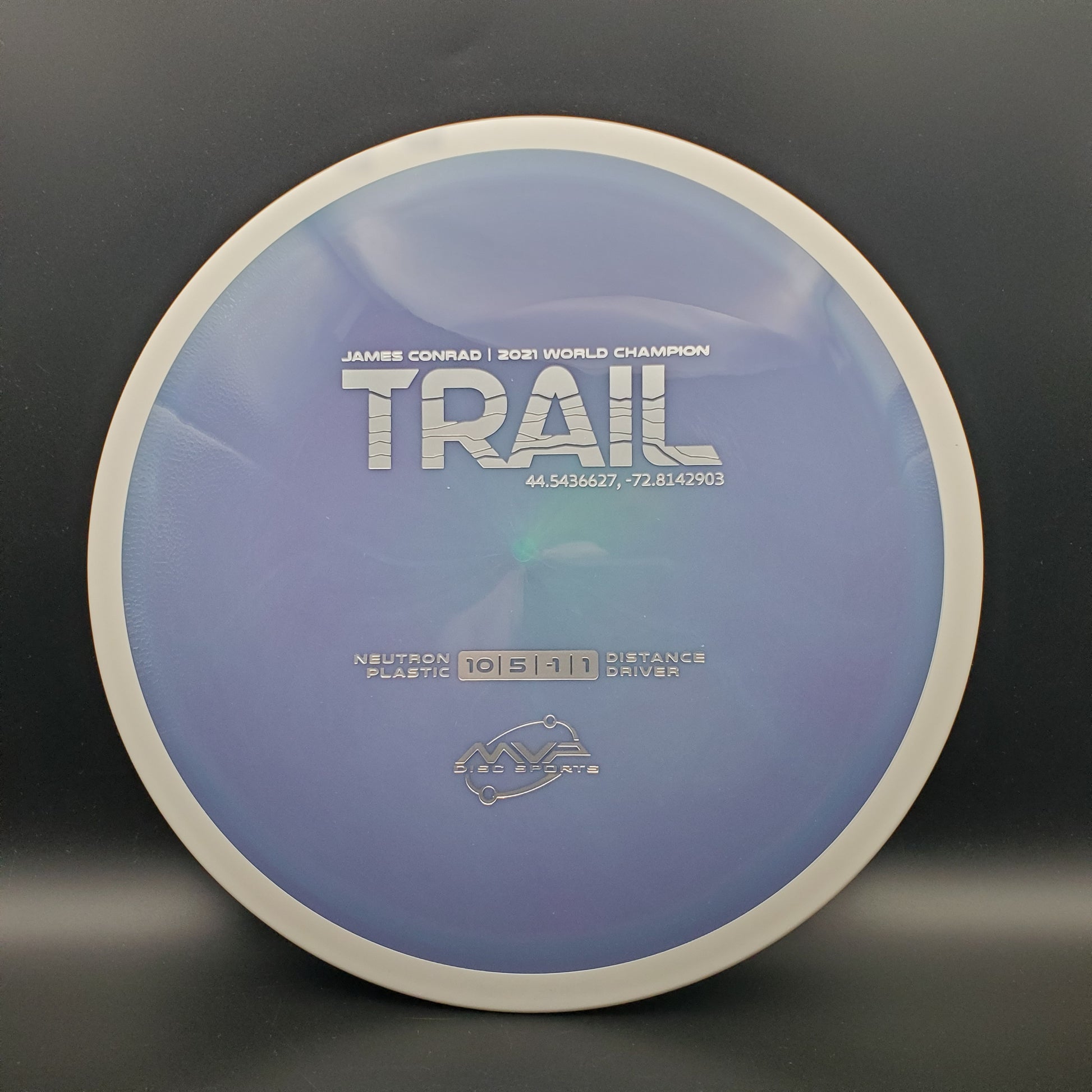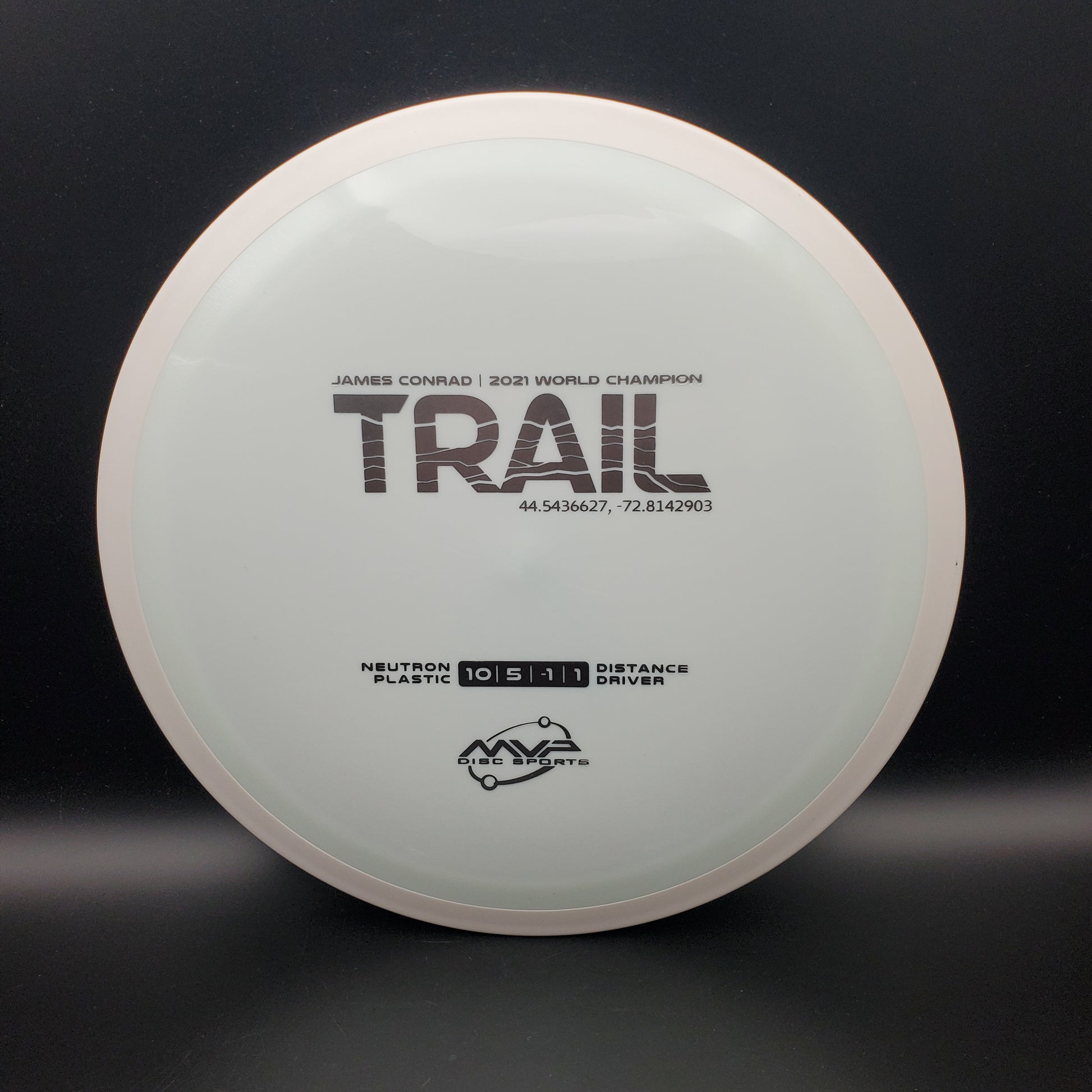 The first official 10-speed driver in the MVP lineup, the Trail is a stable-understable distance driver that, as you might expect of a Conrad disc, excels in hyzer-flip drives and turnovers. Releasing with flight numbers of 10 | 5 | -1 | 1, throwers of all power levels will find the Trail to be an exceptionally responsive driver for a variety of shot shapes, making the Trail a phenomenal disc for all skill levels.