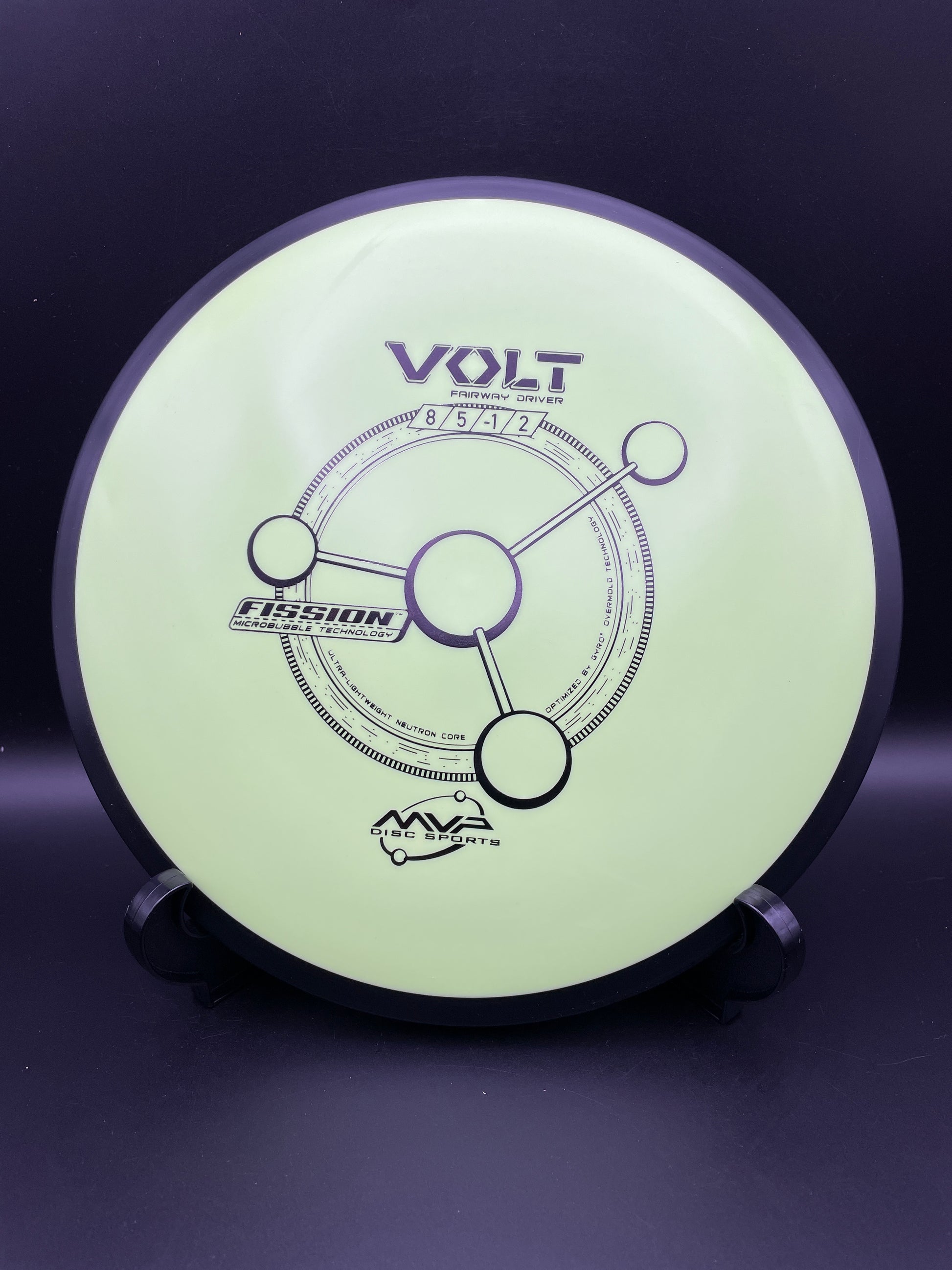 The Volt is a slightly overstable fairway driver. The Volt is geared for long, accurate placement shots. The Volt can hold a long straight line and with a solid, forward penetrating fade. Reach for the Volt when accuracy is needed on long, tight fairways. The Volt’s defining flight characteristics include a subtle turn and a reliable fade. For average throwers and tailwinds, the Volt will resist turn. High-power throws and headwinds will activate the small turnover phase of flight, gaining distance and lateral movement. The Volt’s fade is designed to terminate turnovers in a flat landing or better, and to range those straight gut shots at which the Volt excels. With its workable stability and power-responsive flight, the Volt is most players’ best option for their core long driver.