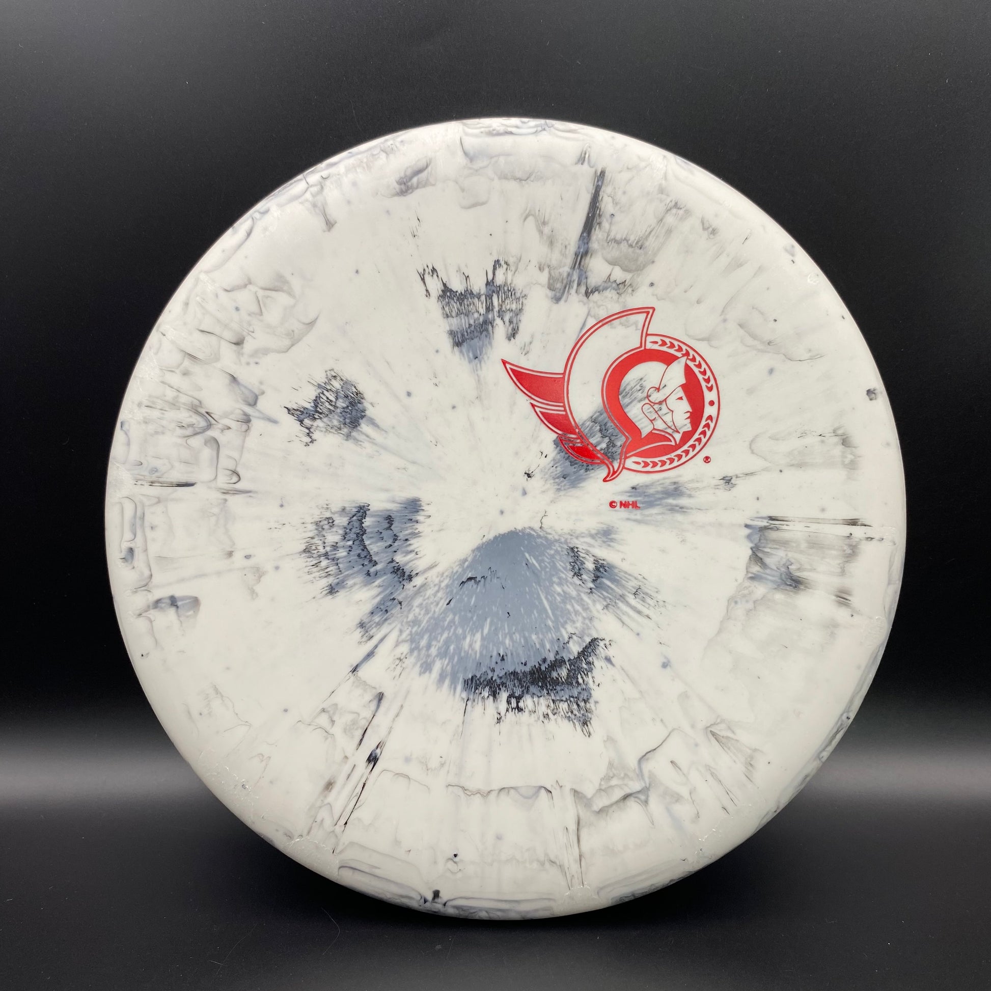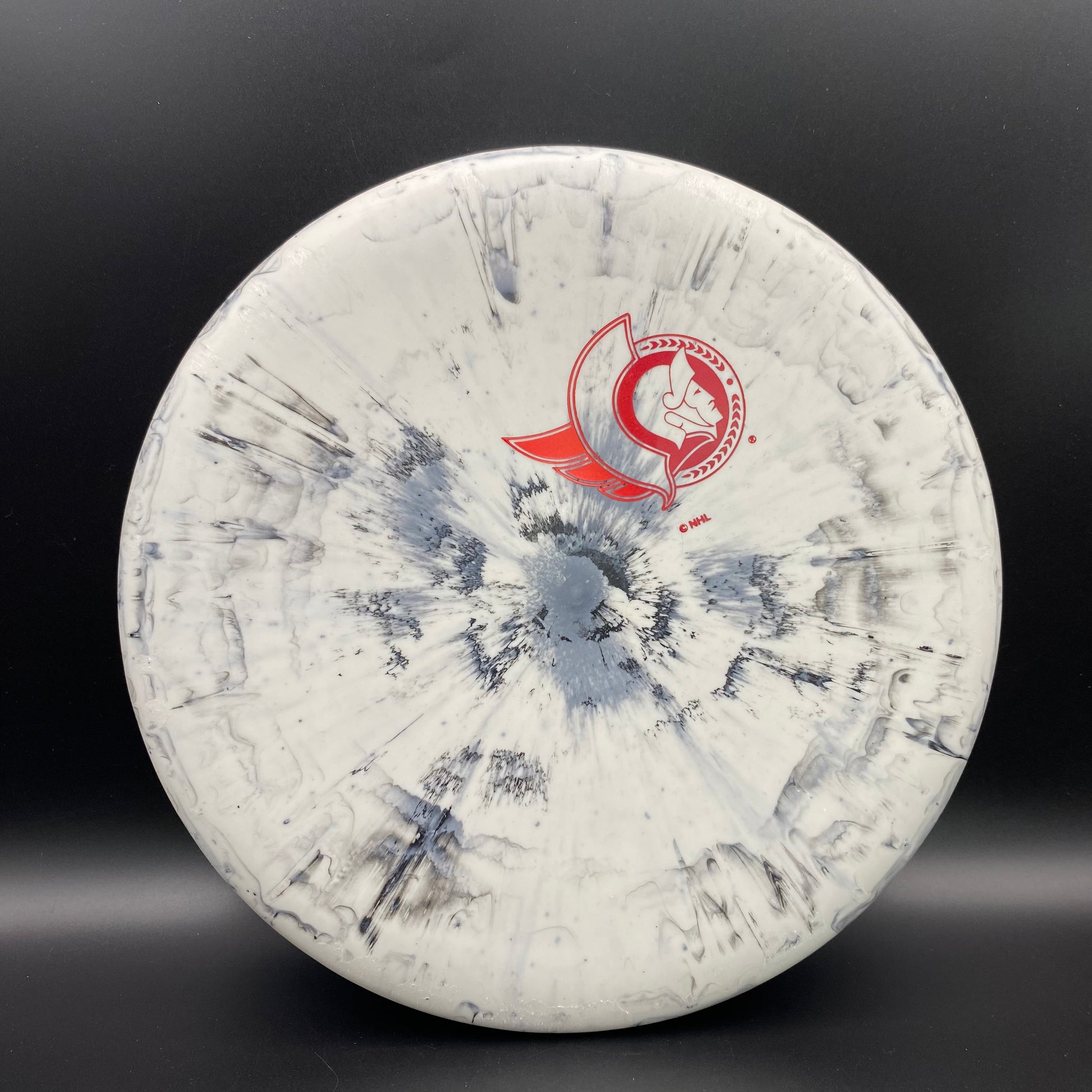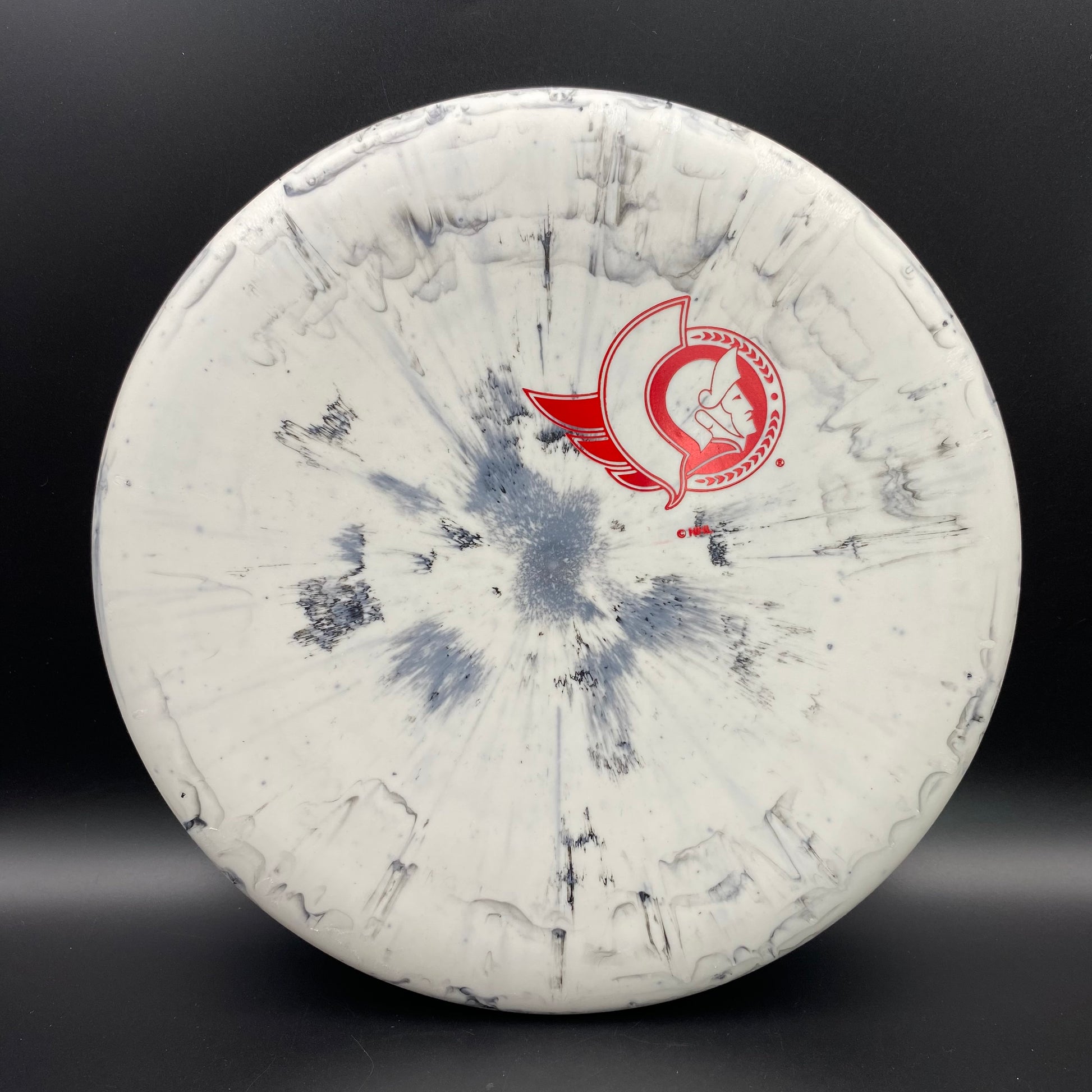 Pick up your favorite team from the Black Ice series, which boasts the team logo in colored foil on a PA-3 300 Fractal. Discs with the Fractal aesthetic treatment utilize a new proprietary processing technique, splashing colors in a complex motif that's distinctive and abstract. It’s calming, chaotic, and completely one-of-a-kind. The Black Ice series brings you a white disc with black Fractal patterns.