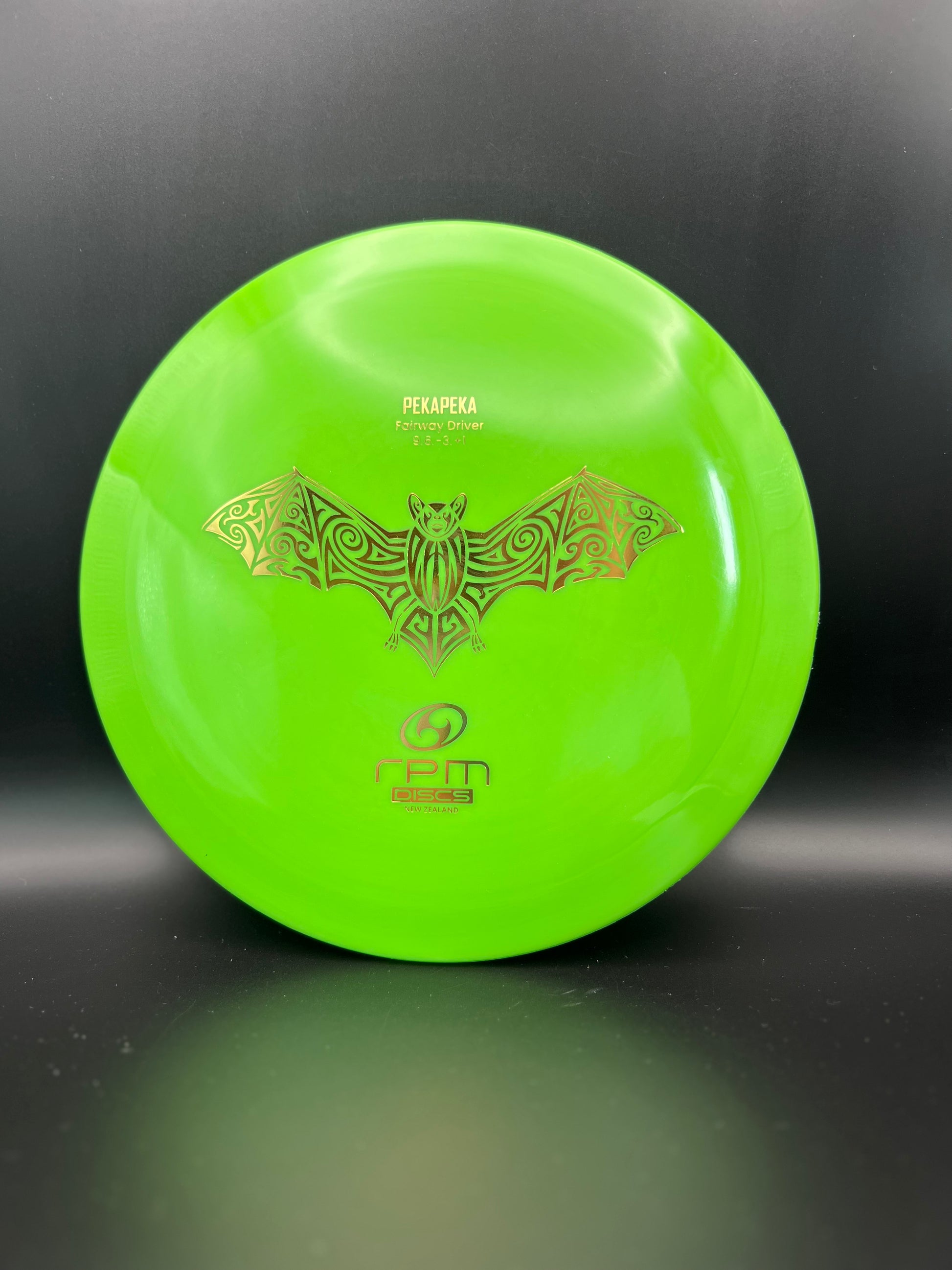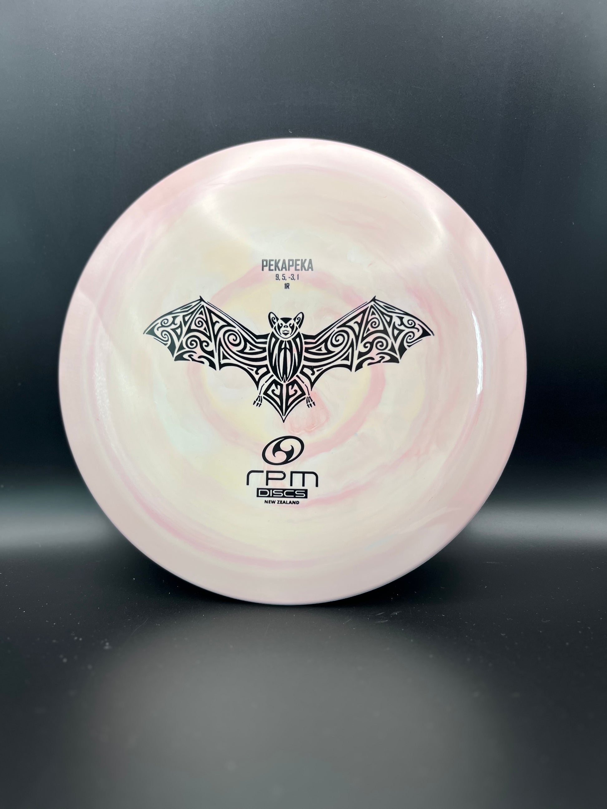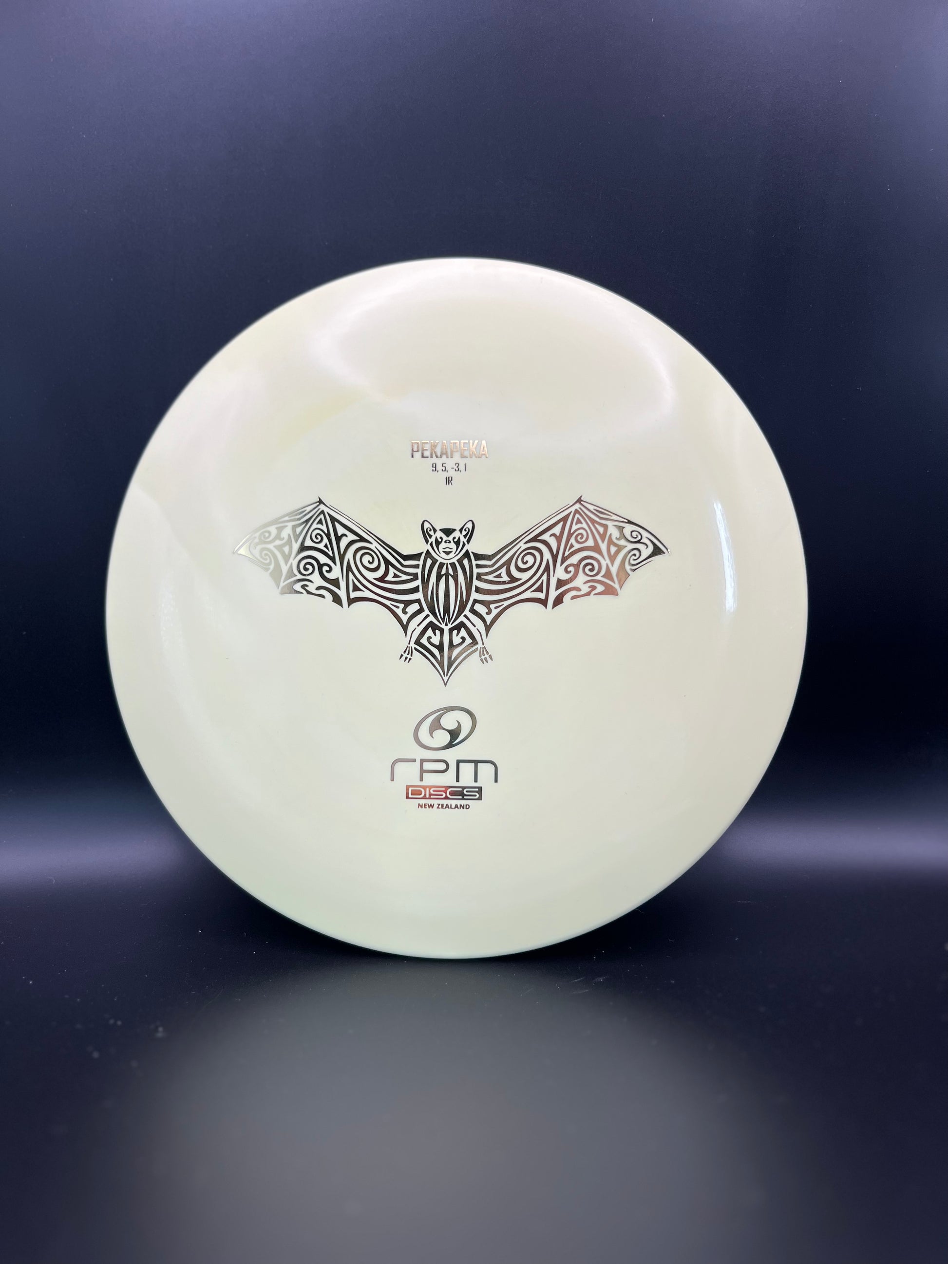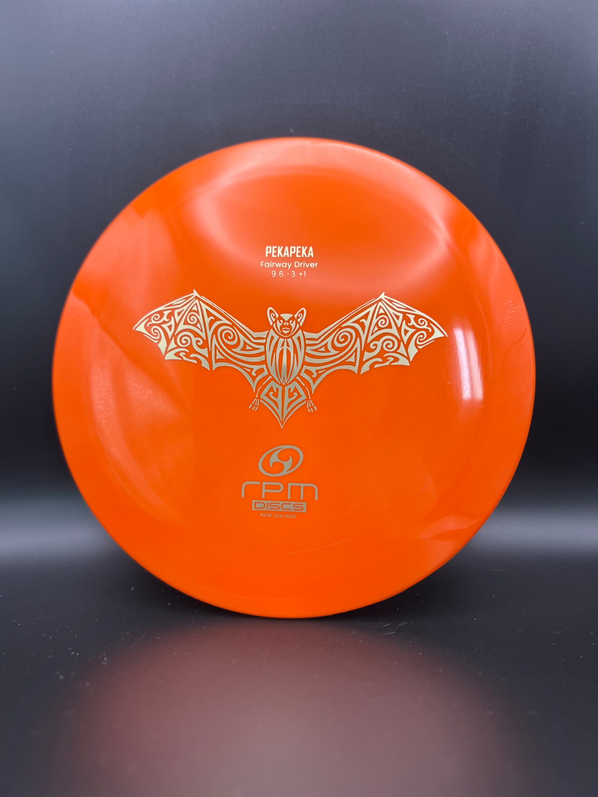 Speed 9, Glide 6, Turn -3, Fade 1 | The RPM Pekapeka is an understable fairway driver that will allow players to work the disc from left to right as a (right hand backhanded player, visa versa for lefties), hyzer flip down narrow corridors and lay down rollers when required. The small convex shaped rim is comfortable to hold and will be ideal for beginners. Intermediate and advanced players will also find good uses for this disc and it will become a mainstay in most peoples bags.