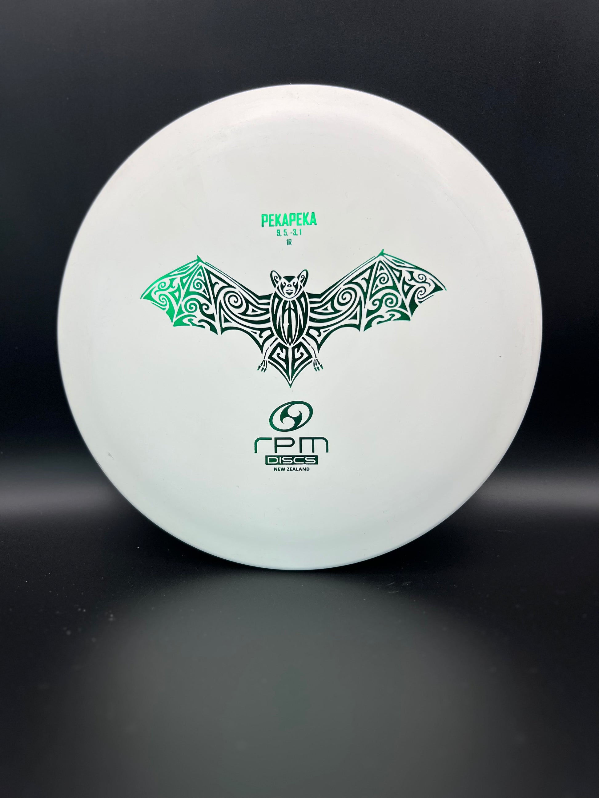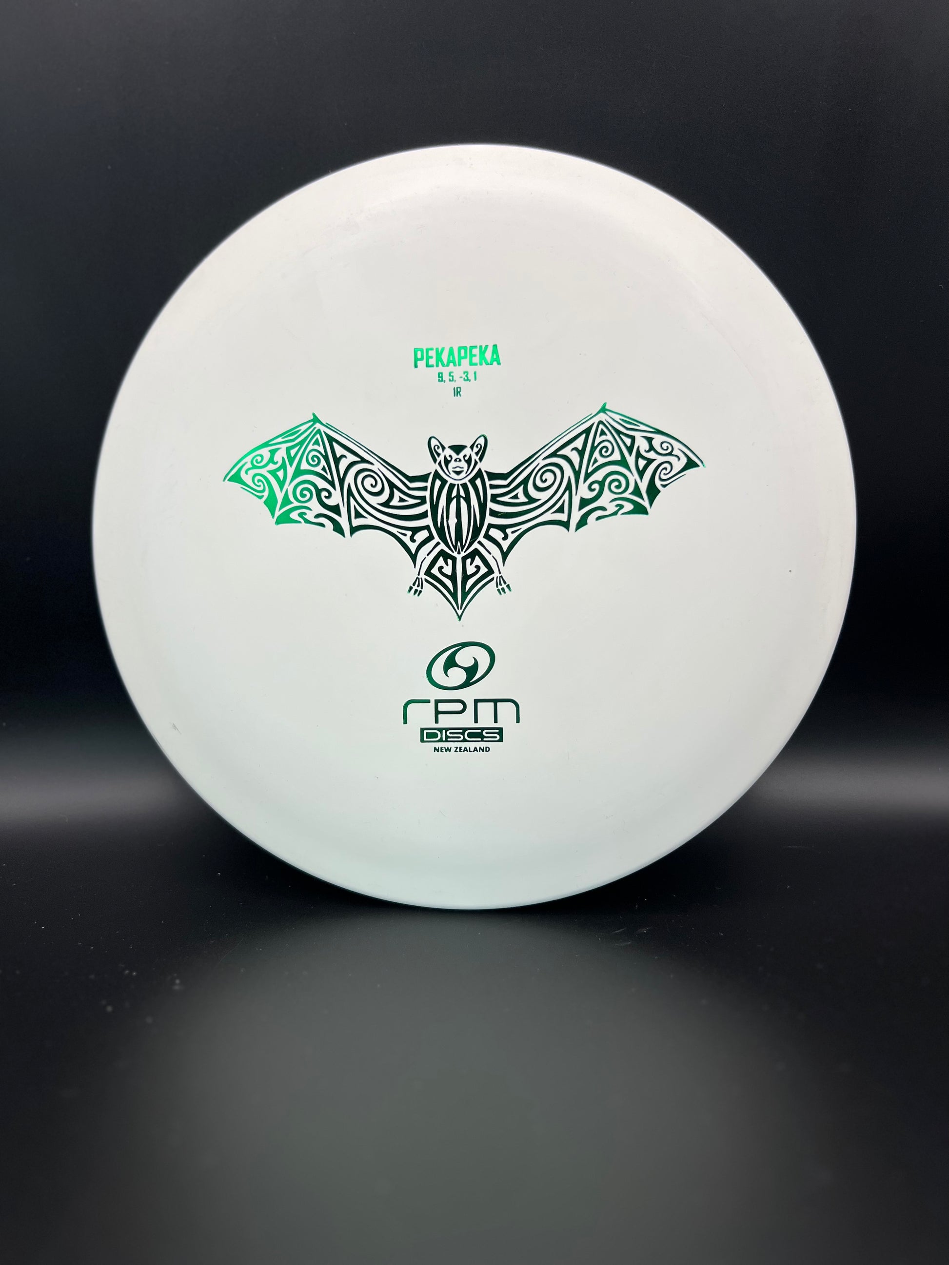 Speed 9, Glide 5, Turn -3, Fade 1 | The RPM Pekapeka is an understable fairway driver that will allow players to work the disc from left to right as a (right hand backhanded player, visa versa for lefties), hyzer flip down narrow corridors and lay down rollers when required. The small convex shaped rim is comfortable to hold and will be ideal for beginners. Intermediate and advanced players will also find good uses for this disc and it will become a mainstay in most peoples bags.