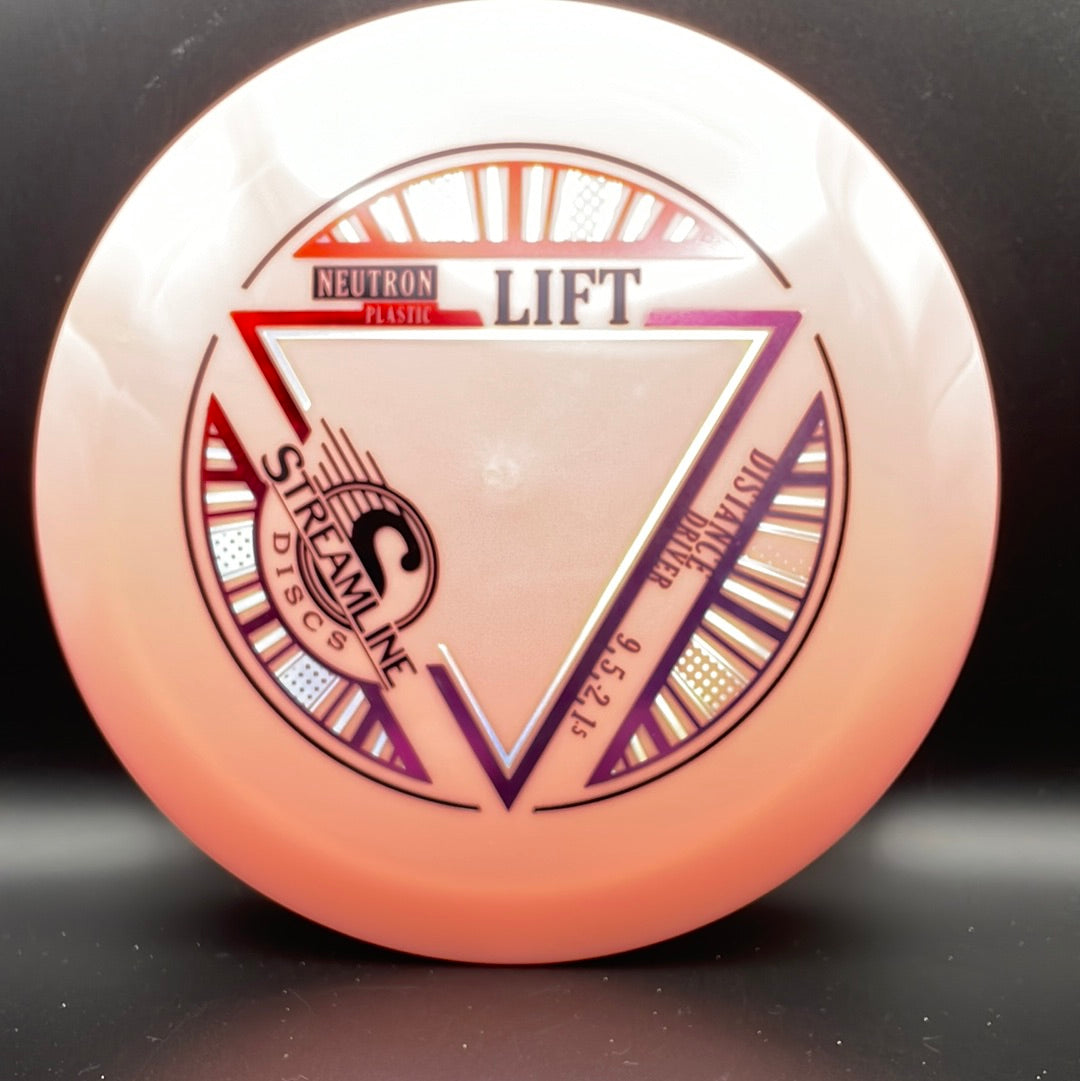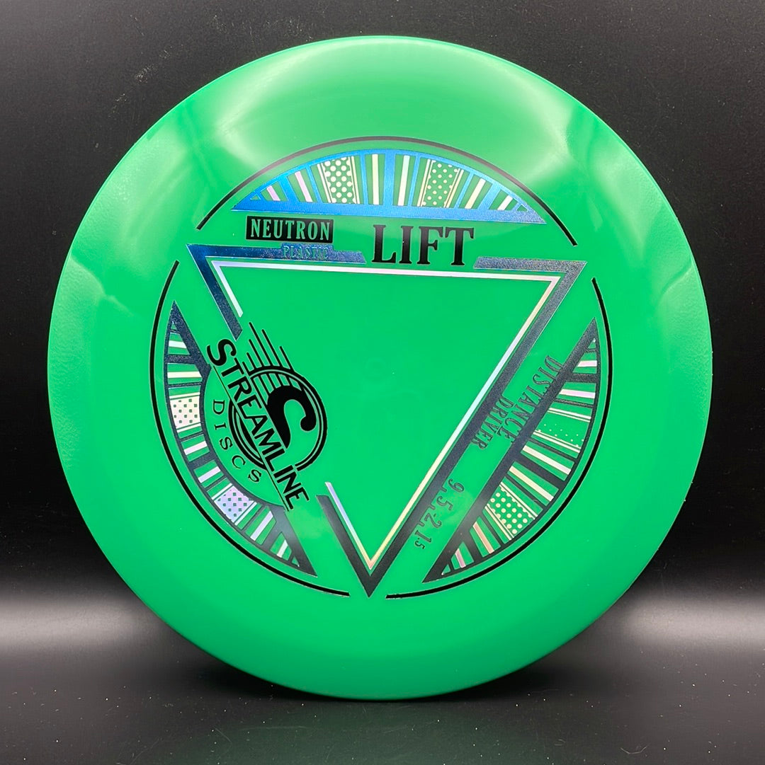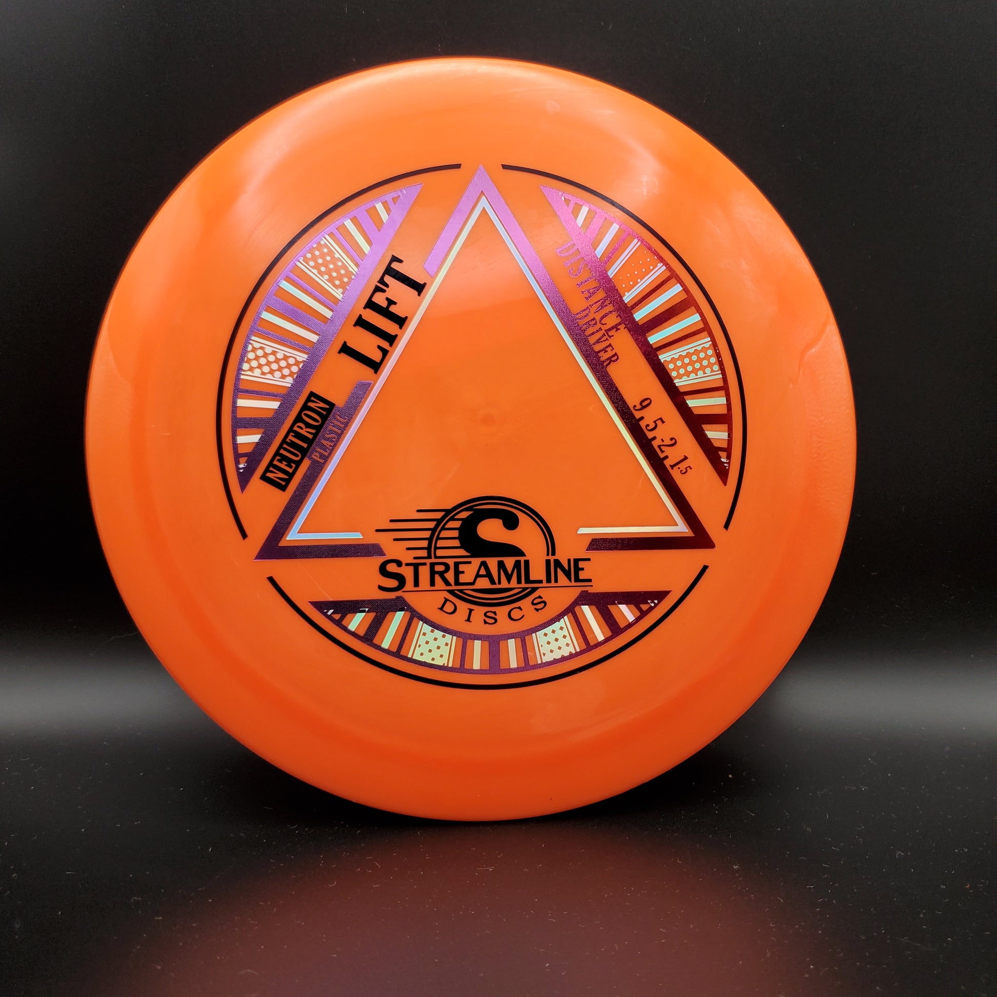 Prepare for liftoff with the new distance driver from Streamline, the Lift! The Lift is Streamline’s new understable distance driver, designed as a straight flying driver with a comfortable rim size and slightly domed profile. The Lift is the second disc along with the Flare in the new 19mm Speed 9 Driver Class for Streamline. In Streamline Neutron Plastic the Lift has premium grip and durability, along with a huge variety of Neutron and Cosmic Neutron color options. For controllable flight lines with effortless glide, activate Bernoulli’s principle with the new Streamline Neutron and Cosmic Neutron Lift!