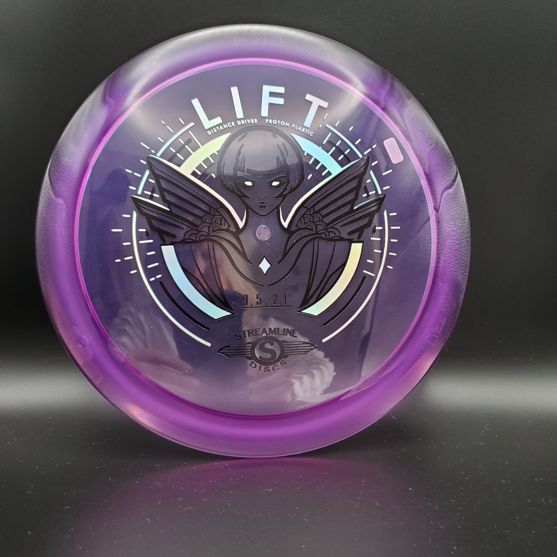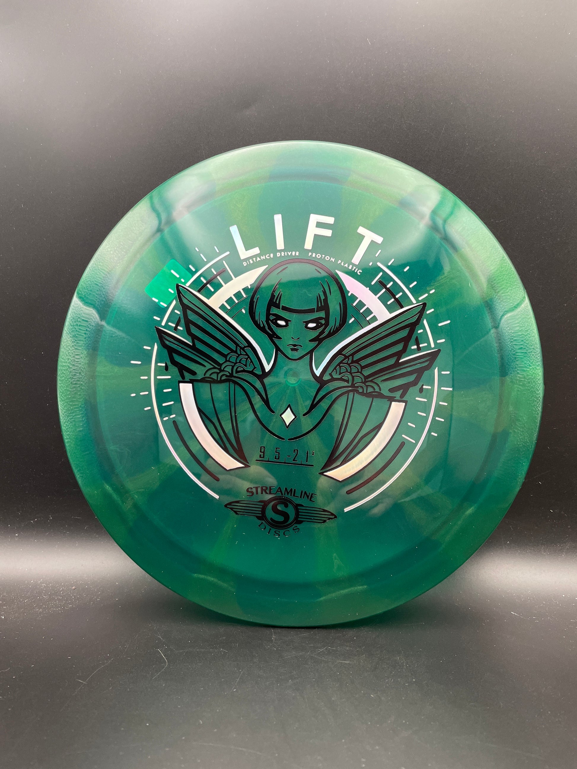 Prepare for liftoff with the new distance driver from Streamline, the Lift! The Lift is Streamline’s new understable distance driver, designed as a straight flying driver with a comfortable rim size and slightly domed profile. The Lift is the second disc along with the Flare in the new 19mm Speed 9 Driver Class for Streamline. In Streamline Neutron Plastic the Lift has premium grip and durability, along with a huge variety of Neutron and Cosmic Neutron color options. For controllable flight lines with effortless glide, activate Bernoulli’s principle with the new Streamline Neutron and Cosmic Neutron Lift!