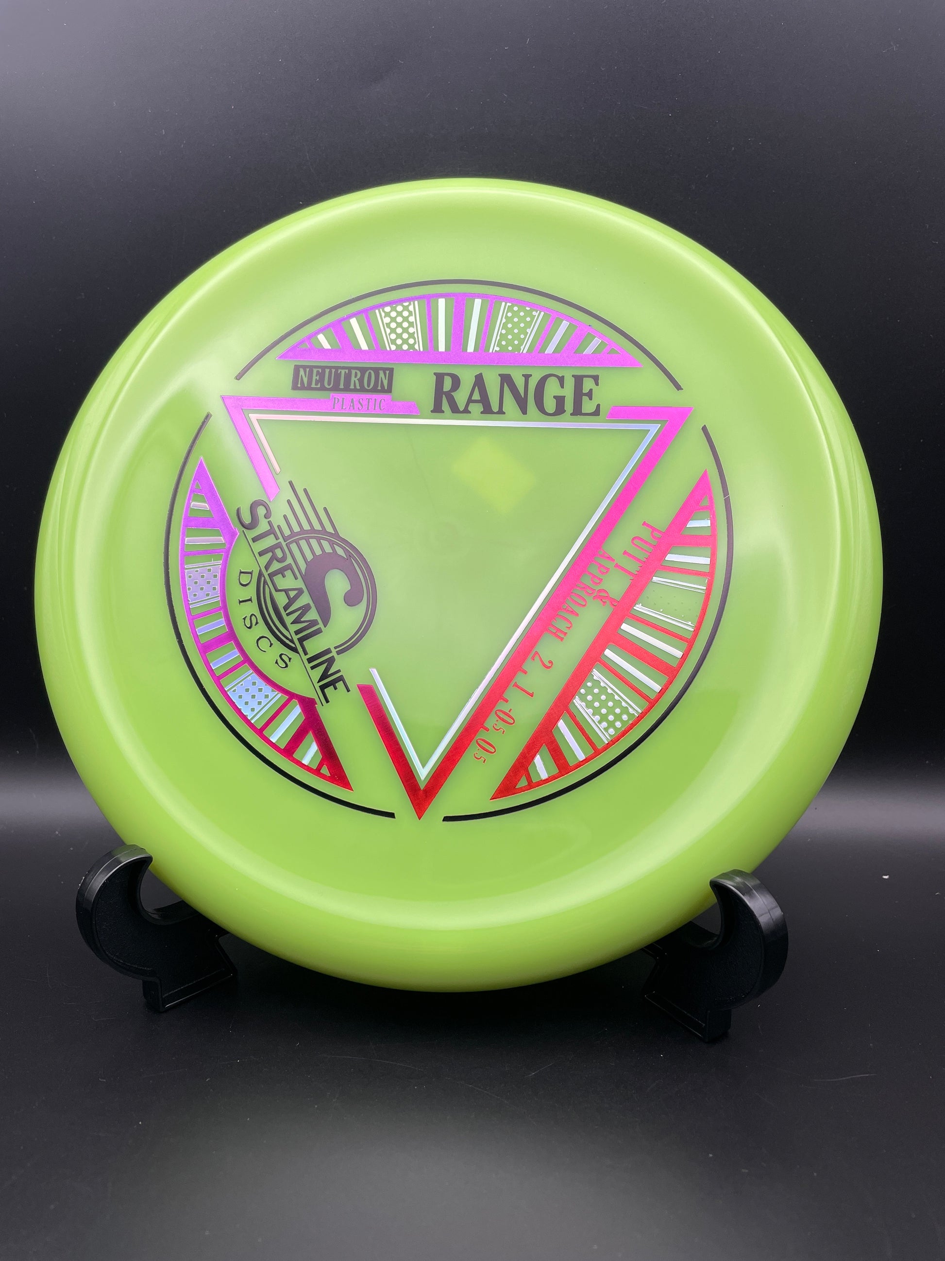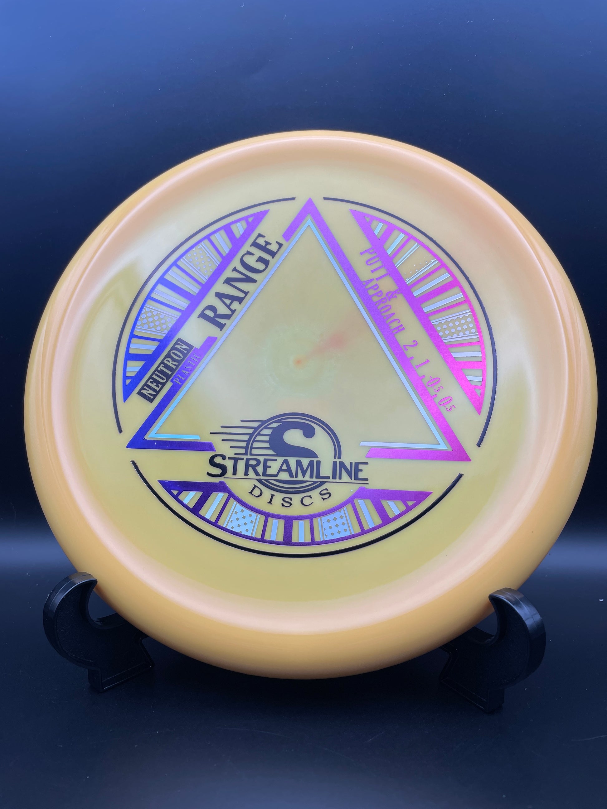 The Range has officially joined our stock catalog! Releasing with flight numbers of 2 | 1 | -0.5 | 0.5, the Range makes its stock debut in Neutron plastic - ensuring a reliable, long-lasting approach disc for any time of the year. Designed with torque resistance and low glide in mind, the Range is a straight-flyer with subtle but reliable fade. Pairing that straight flight with dramatically reduced glide - thanks to its unique shape - the Range is an extremely reliable approach disc for when ranging distance is at a premium. Try the Neutron Range for yourself and discover true utility!