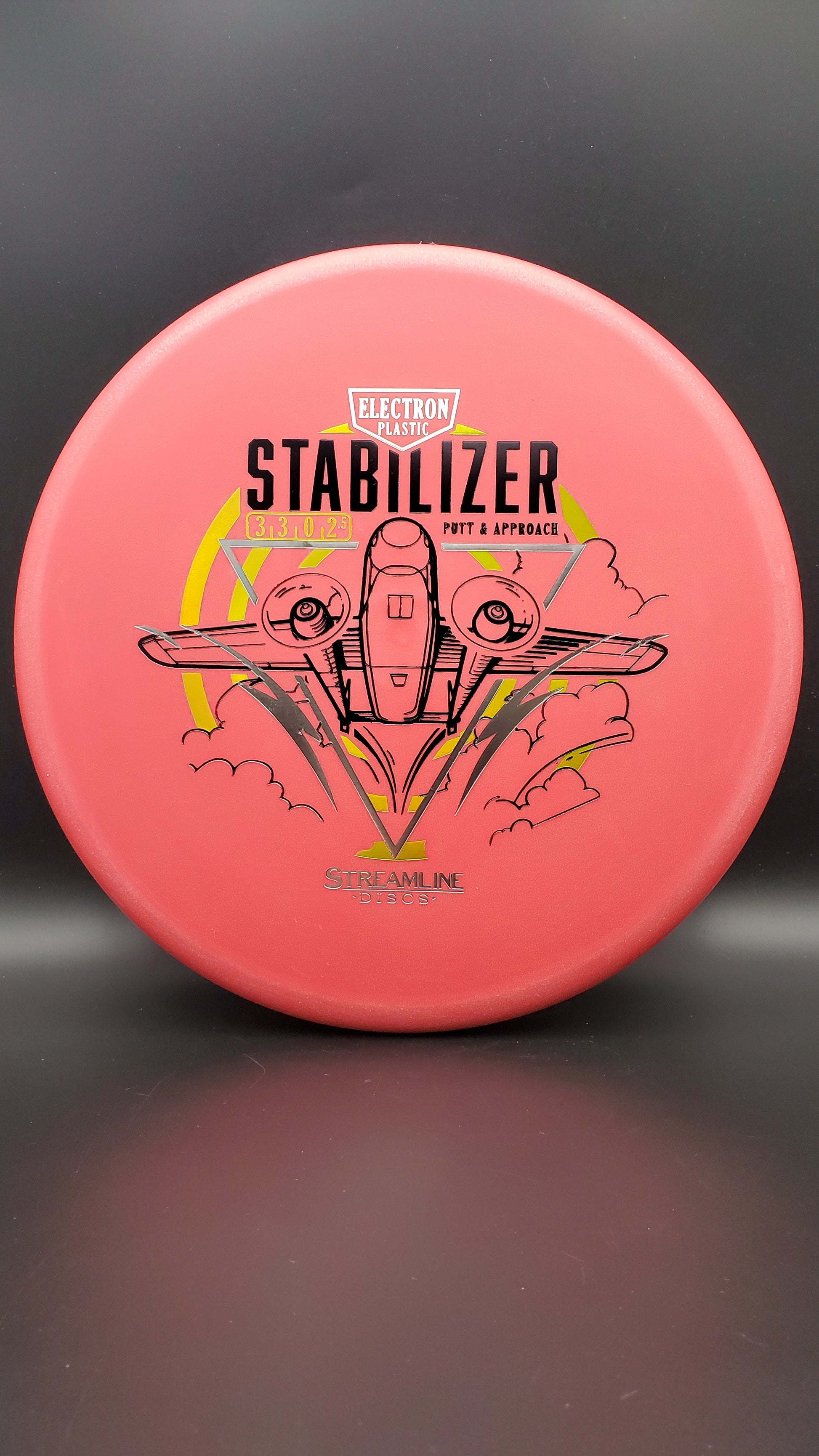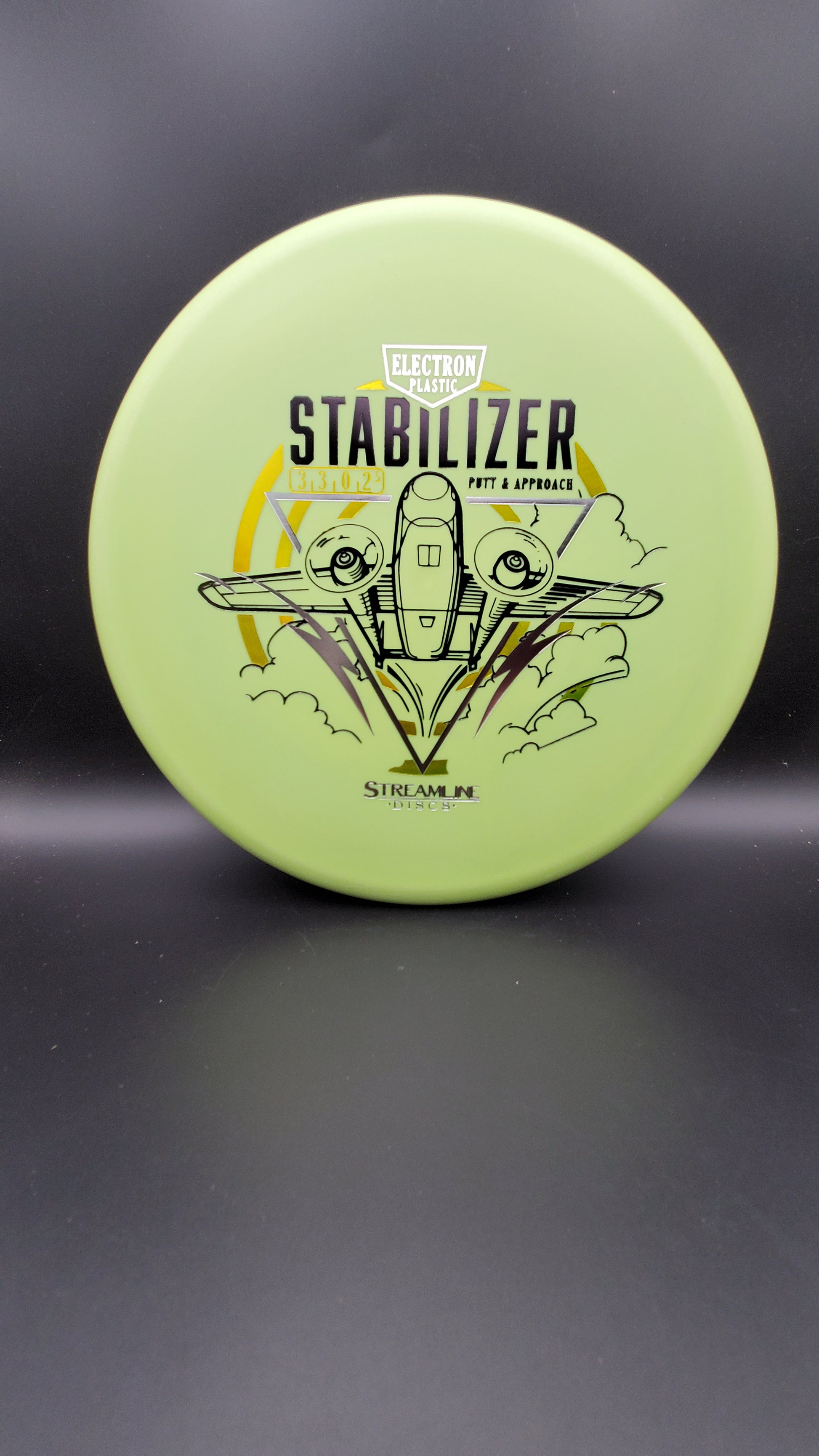 The Stabilizer is the second putter from Streamline Discs and is the overstable compliment to the Streamline Pilot. The Stabilizer has a similar hand feel and depth as the Neutron Pilot, but with a slightly raised shoulder and more pointed nose that produces a flatter and more stable putter. The Stabilizers defining flight characteristic is straight flights with minimal turn, into a strong finishing fade for point and shoot accuracy on the approach.