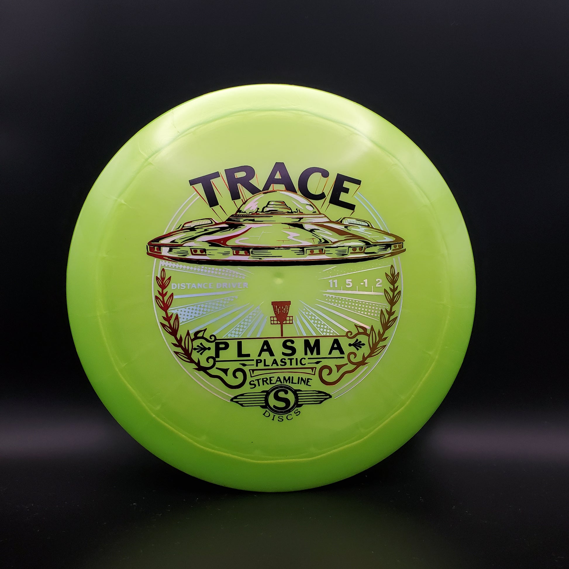 The Trace is a straight-stable distance driver. The Trace has a manageable 21mm rim width and straight-stable flight that places it squarely in the Speed 11 Power Straight market. The Trace’s moderate dome is smooth and even, with a shoulder and depth that yields excellent glide. Most players will be able to stand the Trace up on a hyzerflip, but the Trace will soak up plenty of power before being pushed off its straight line. Its ending fade is smooth but dependable for easy ranging. The Trace is currently the only Streamline disc in the 21mm Distance Driver class.