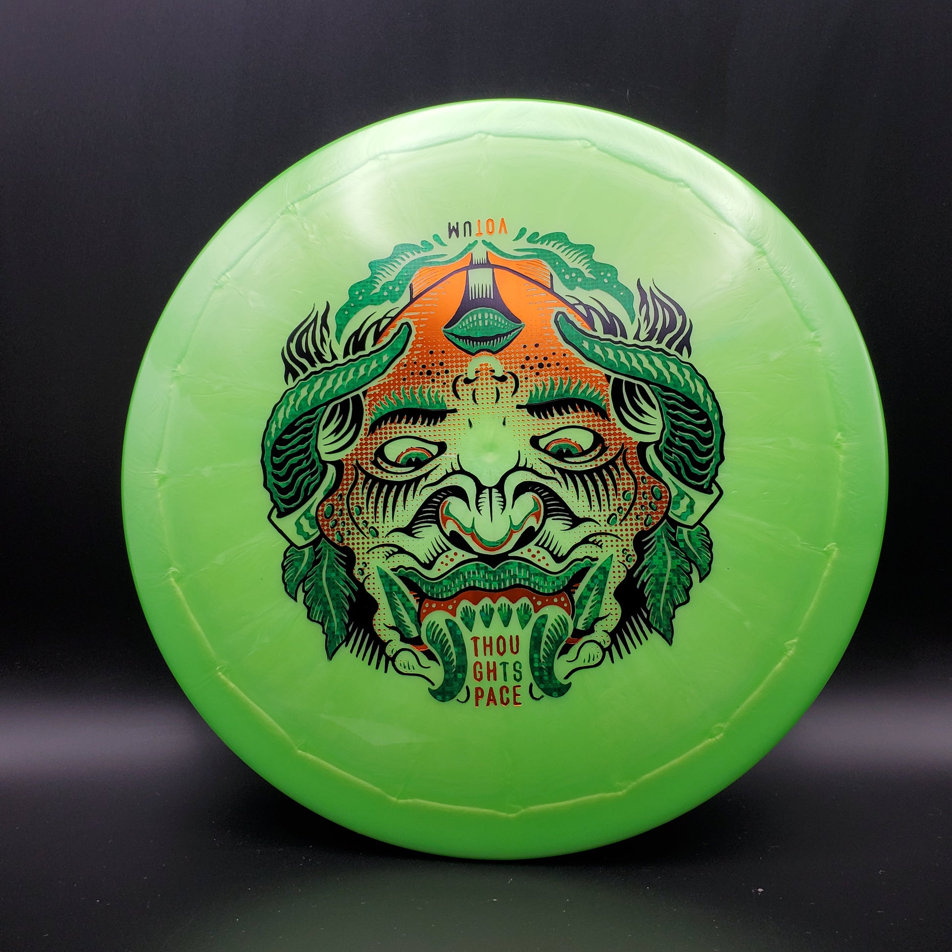 The Votum is a great fairway / distance driver crossover disc at a speed that anybody can handle. It is designed to be a go-to driver for shots that don't need excessive fade and will become workhorse in the bag for players desiring reliable distance and placement on the fairway.